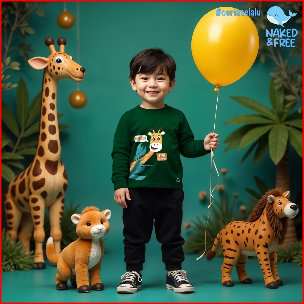 Naked Free Baju Kaos Lengan Panjang Anak Laki-laki Animal Series Ready Play Time Bahan Katun Ani-1