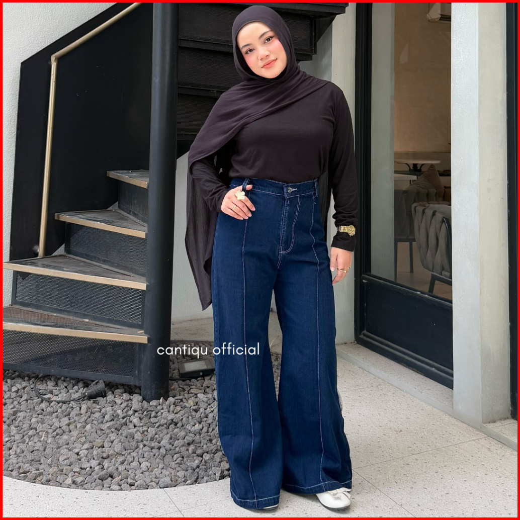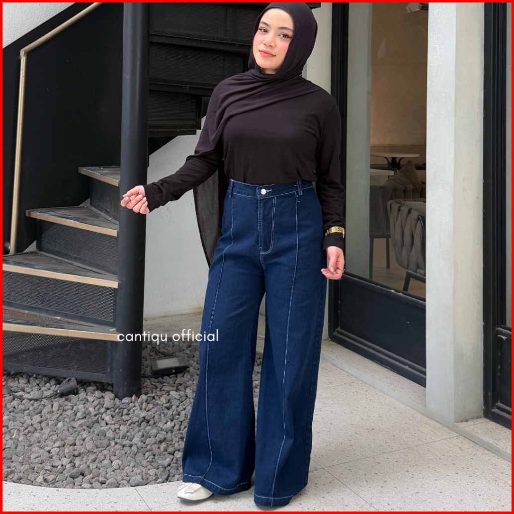 Cantiqu - Yurim Celana Panjang Jeans Wanita Bahan Jeans 6oz