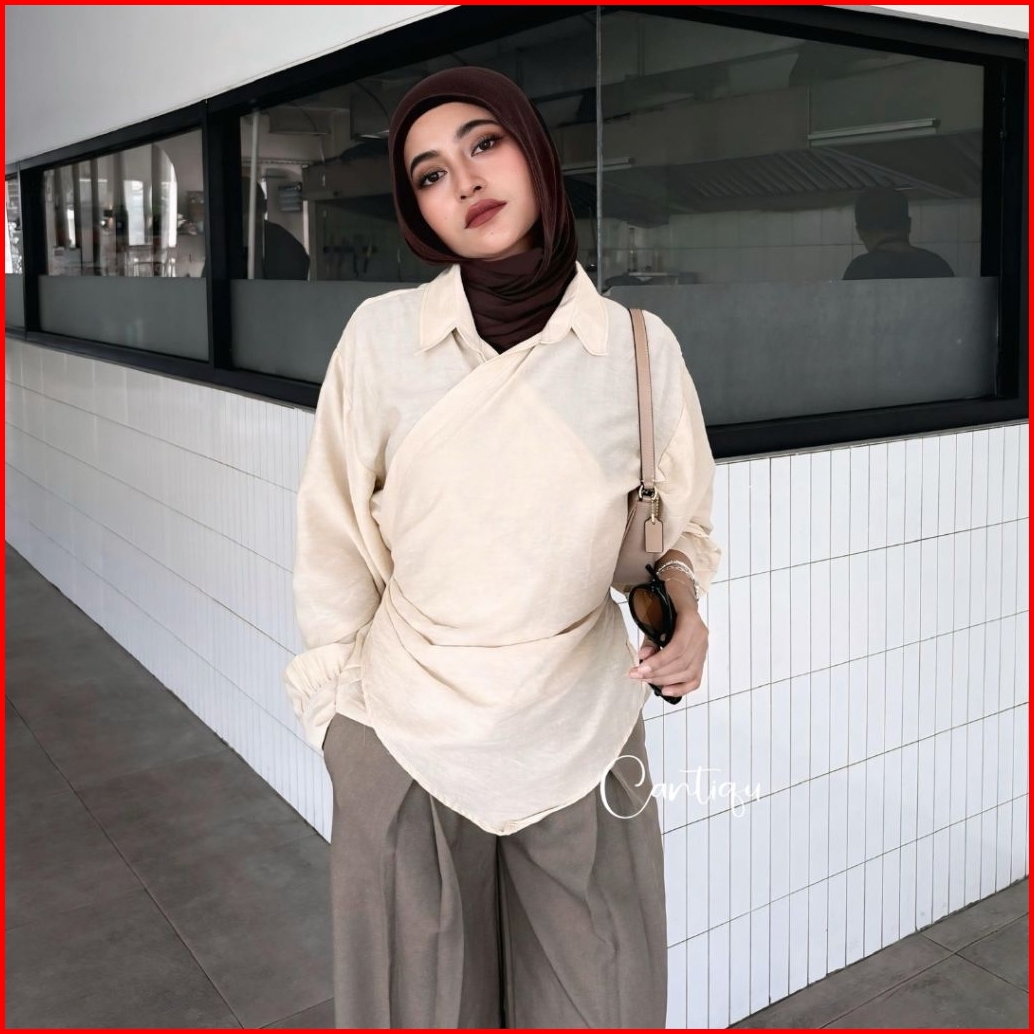 Cantiqu - Blouse Ilonna Pololinen Kemeja Wanita Pleated Bahan Pololinen