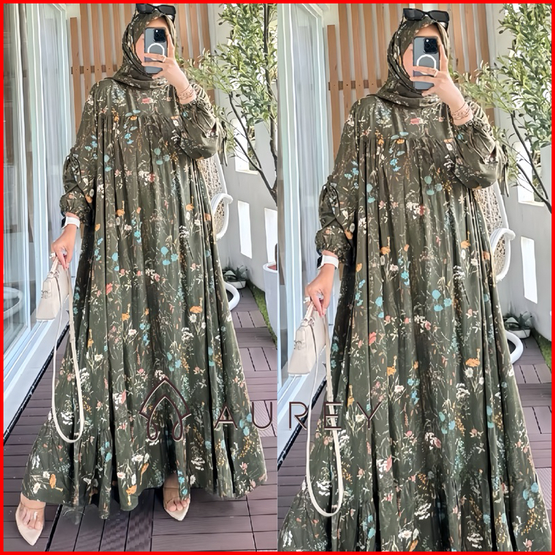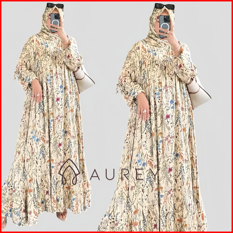 Aurey Gamis Set Hijab Amanda Gamis Rayon Premium Busui Friendly Gamis Dress Wanita Lengan Panjang