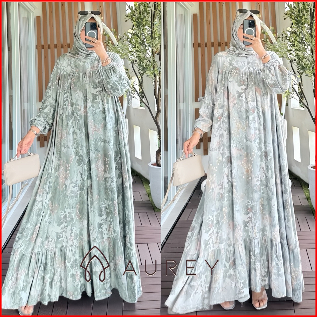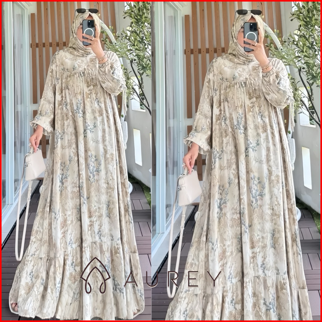 Aurey Set Hijab Gamis Wanita Ninda Gamis Wanita Gamis Rayon Busui Motif Kekinian Gamis Wanita