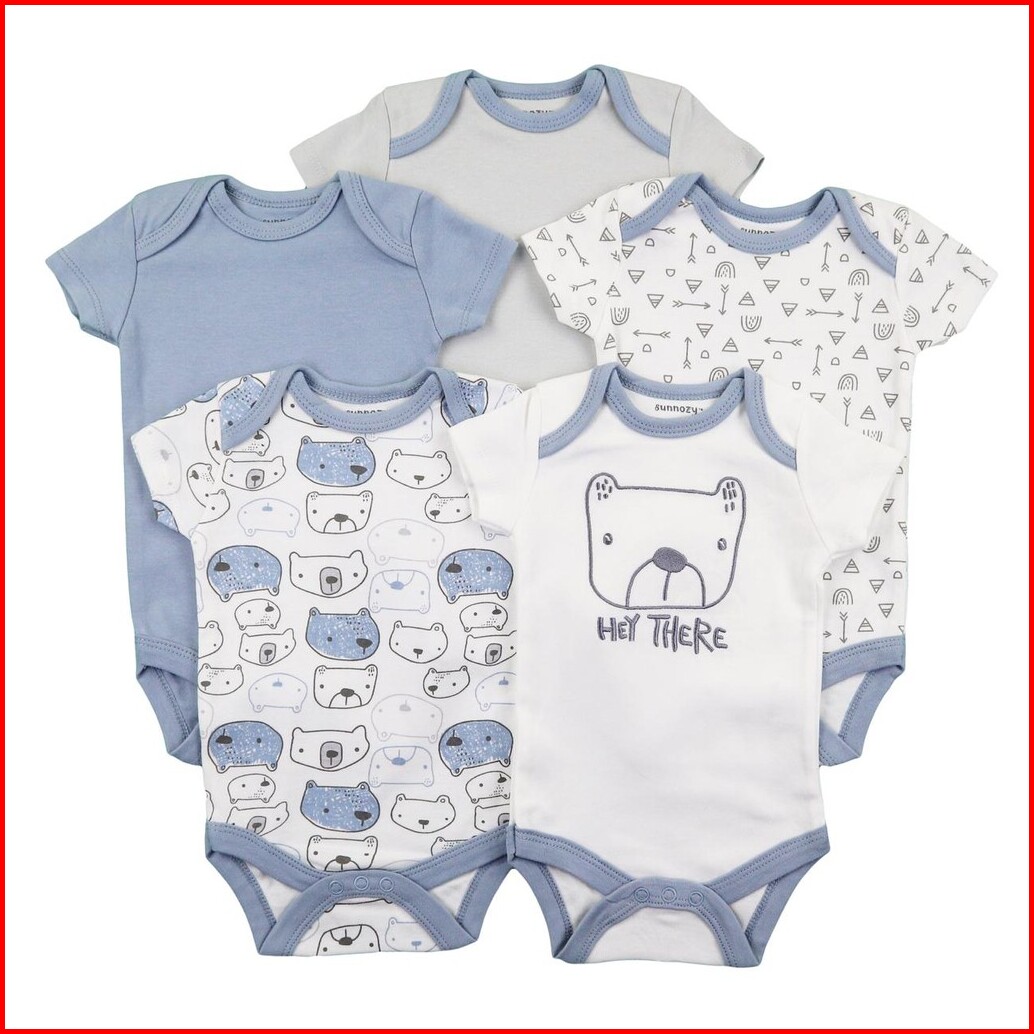 Babypotato - Baby Bodysuit 5pcs Motif Hey Blue