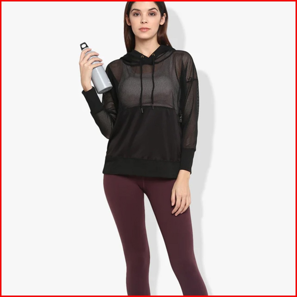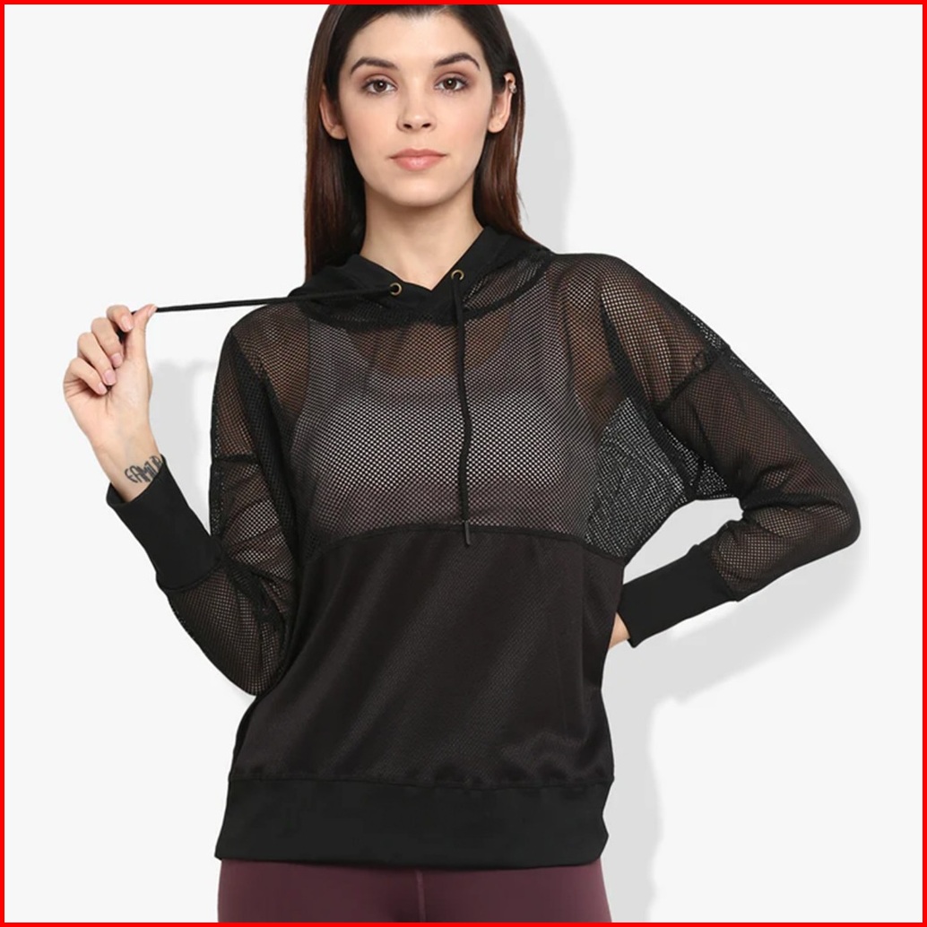Purpose - Hoodie Wanita Sport Jaring Black
