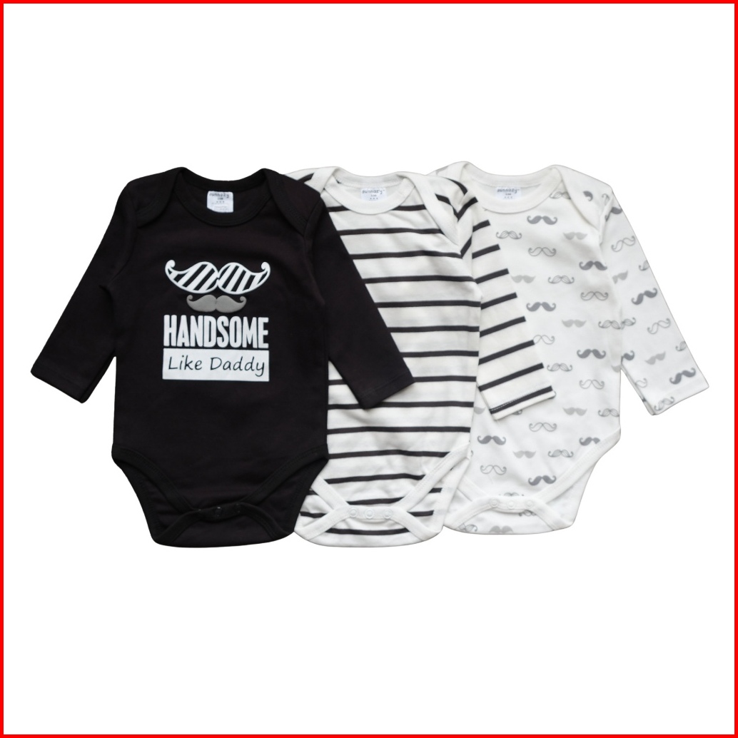 Babypotato - Baby Longsleeve Bodysuit 3pcs Motif Handsome Jumper Pendek Bayi