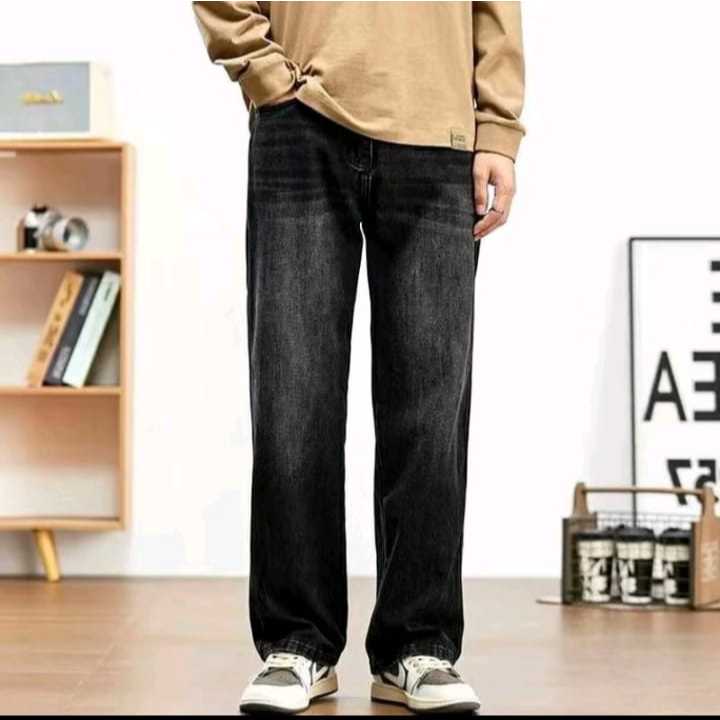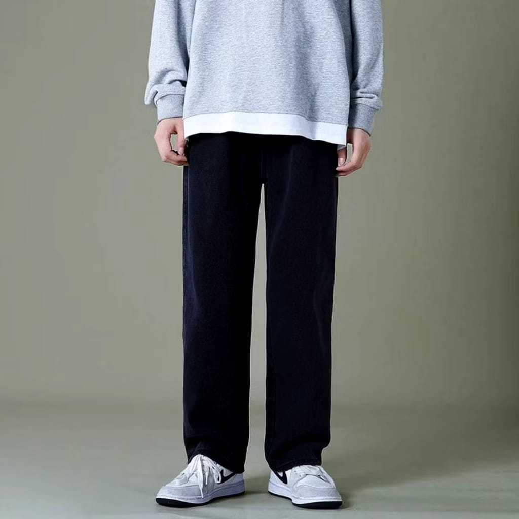 Celana GONDES Jeans Wisker Pria Unisex Wide Leg Gombrong Skena Black Wisker pria loose fit jumbo
