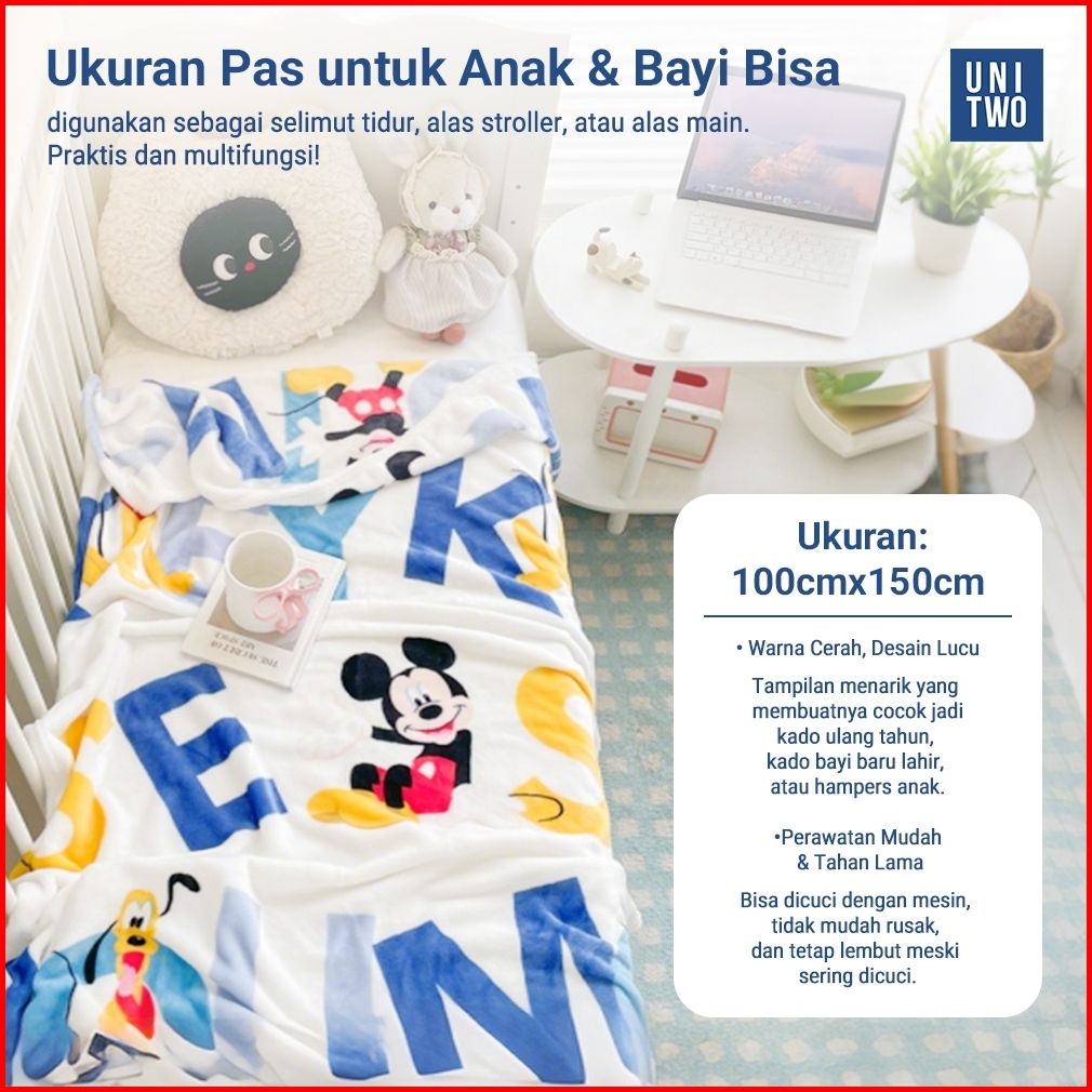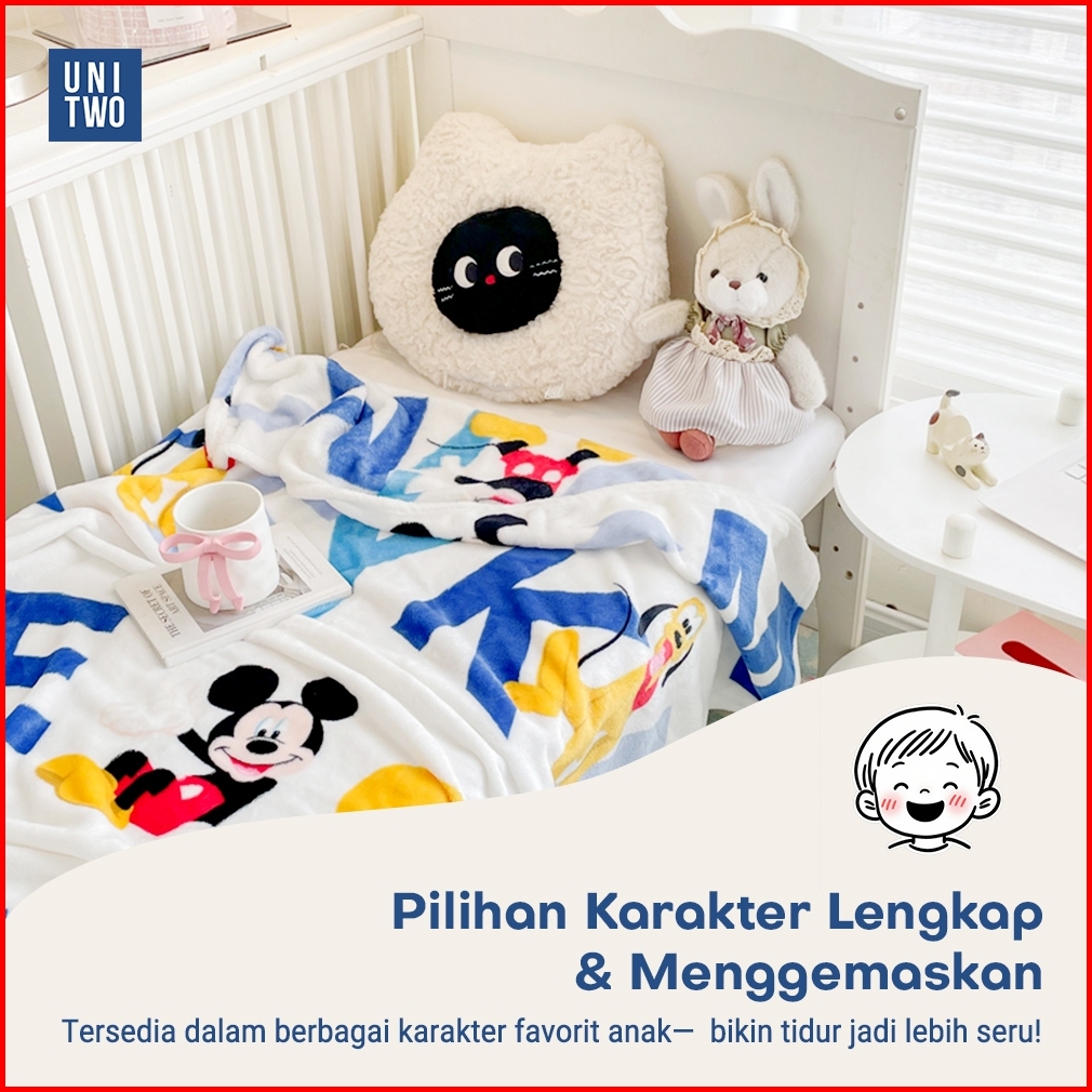 Unitwo Kiddy Cloud Blanket Selimut Only Ukuran 100 X 150cm - Selimut Tidur Anak Motif Tokoh Kartun Populer Lucu Unik Men