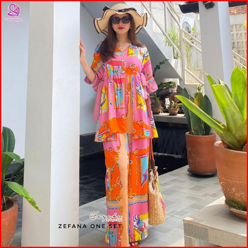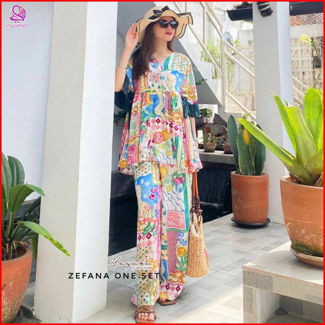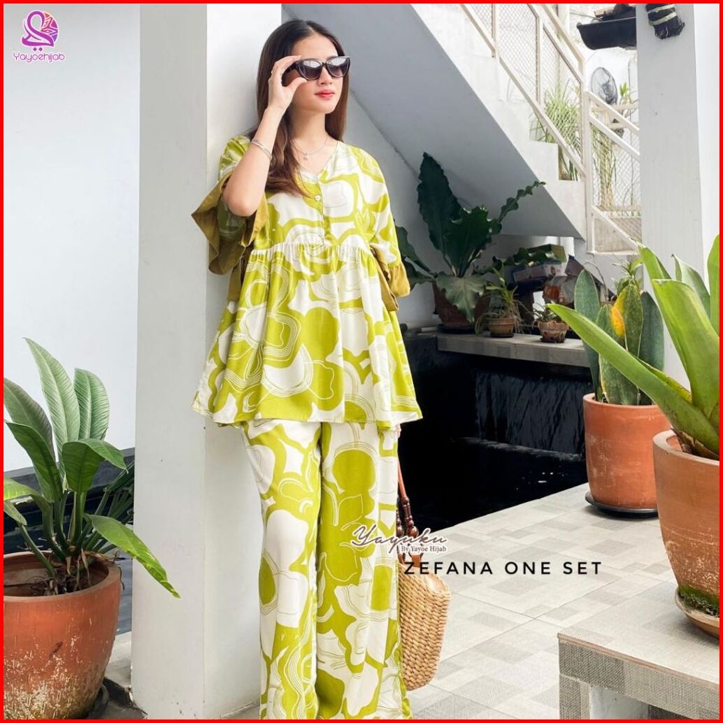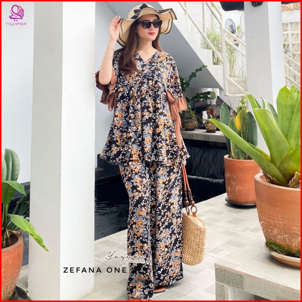 Setelan Zefana Celana Panjang Bahan Rayon Adem Tali Samping Kanan Kiri Kerah V-neck Busui Friendly Yayuku By Yayoe Hijab