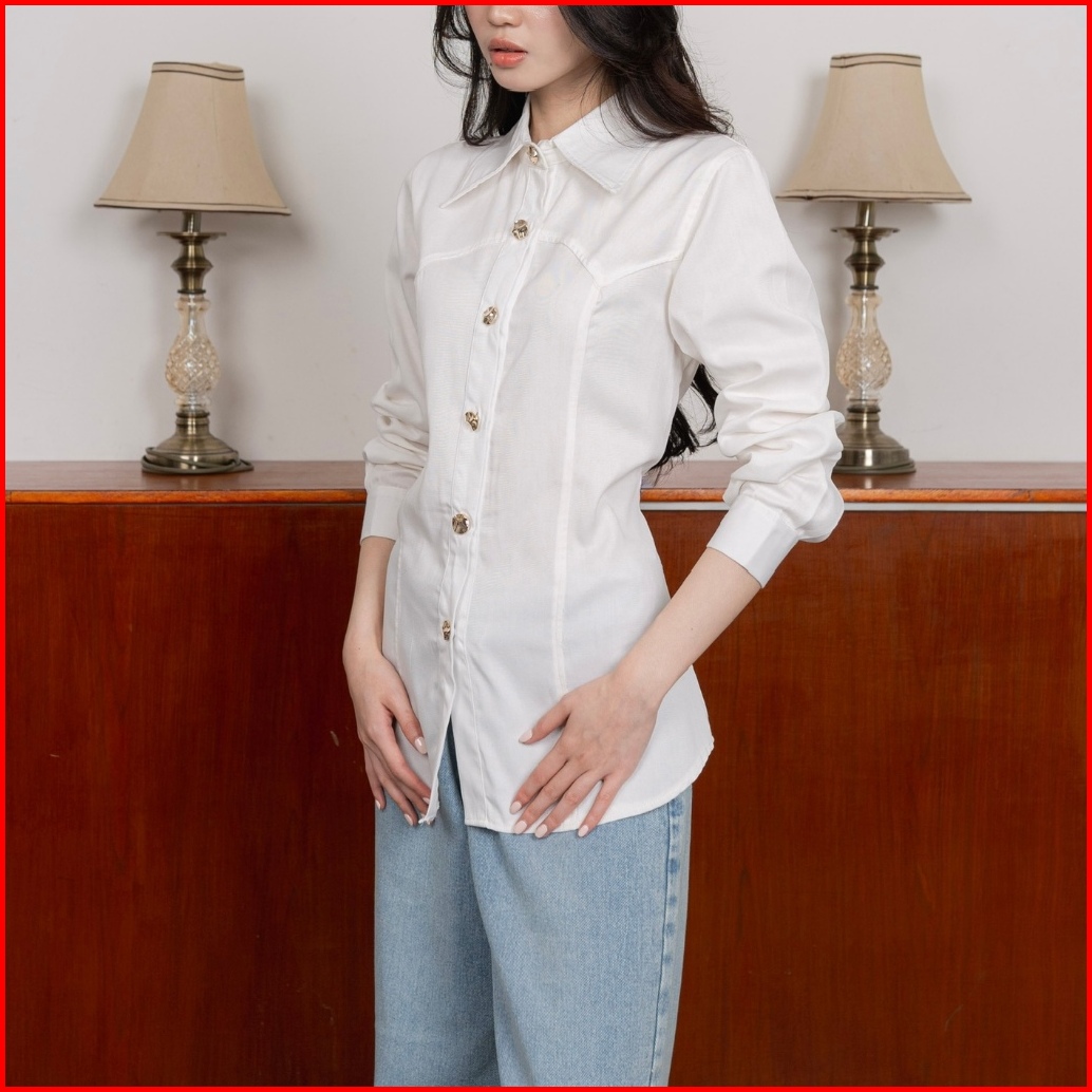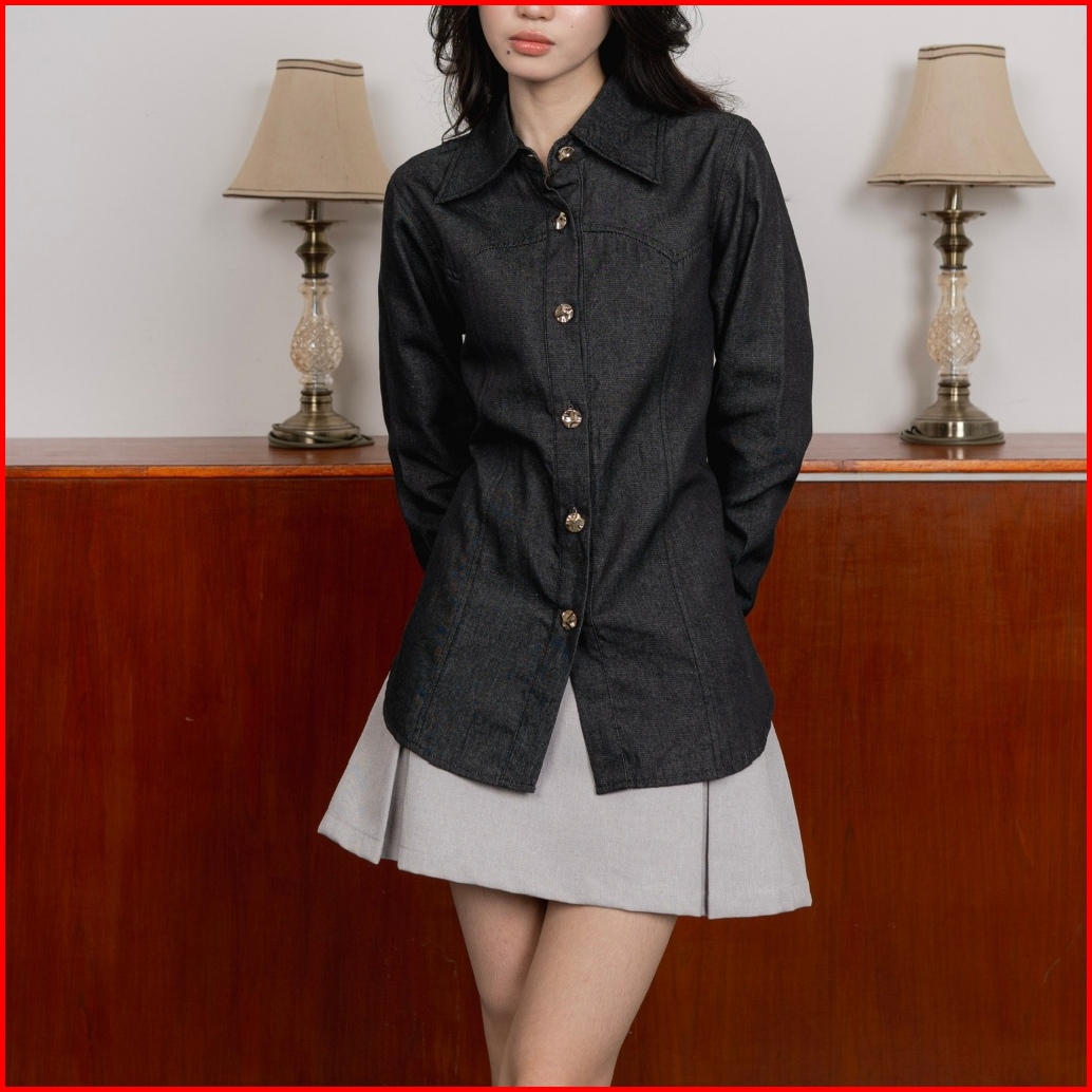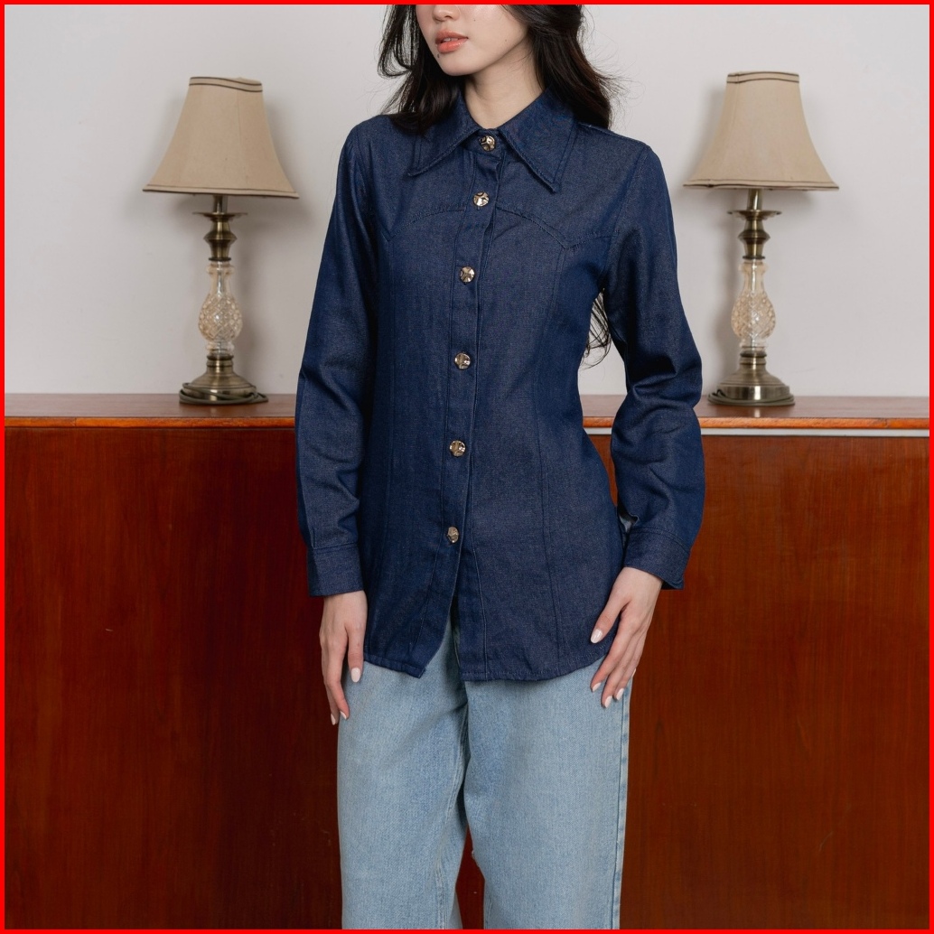Asoka Sylvia Shirt 2510 - Kemeja Atasan Wanita Formal - Drew Denim Shirt Long Sleeves