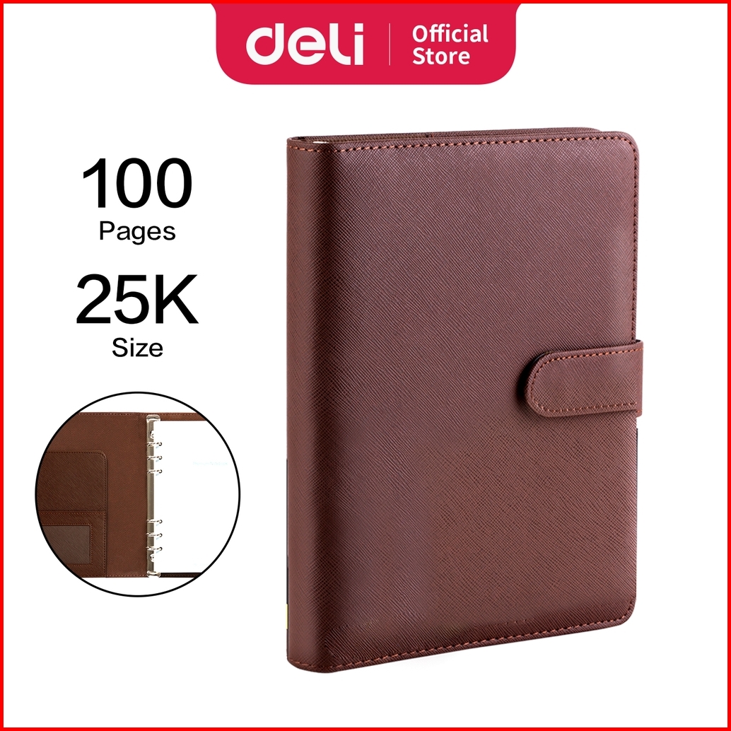 Deli Loose-leaf Notebook Buku Catatan 25k 210x145mm 100 Lembar Warna Coklat Hitam 3151