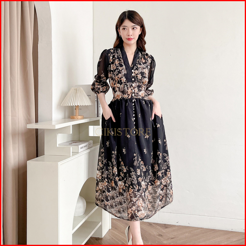 Cikistore - Ryabel Dress Wanita Casual Korean Midi Dress Wanita Long Dress Dress Wanita Flowy