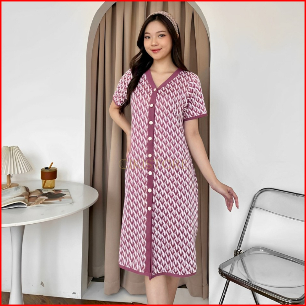Cikistore - Anabell Casual Dress Wanita Casual Dress Knit Kancing Depan Dress Bumil Friendly