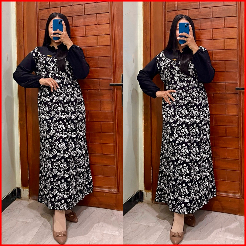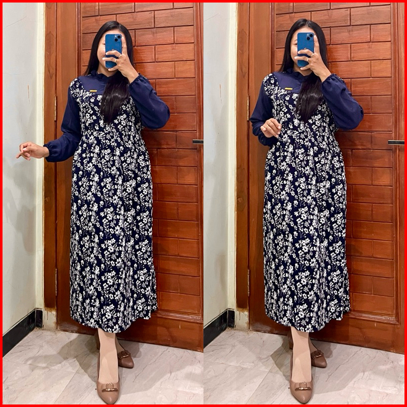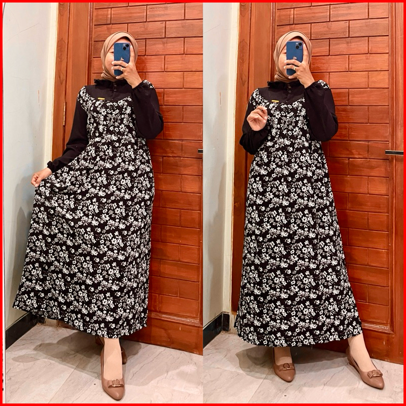 Maygrosir.id Amira Midi Dress Crinkle Airflow Premium Motif Melati Baju Gamis Wanita Muslim