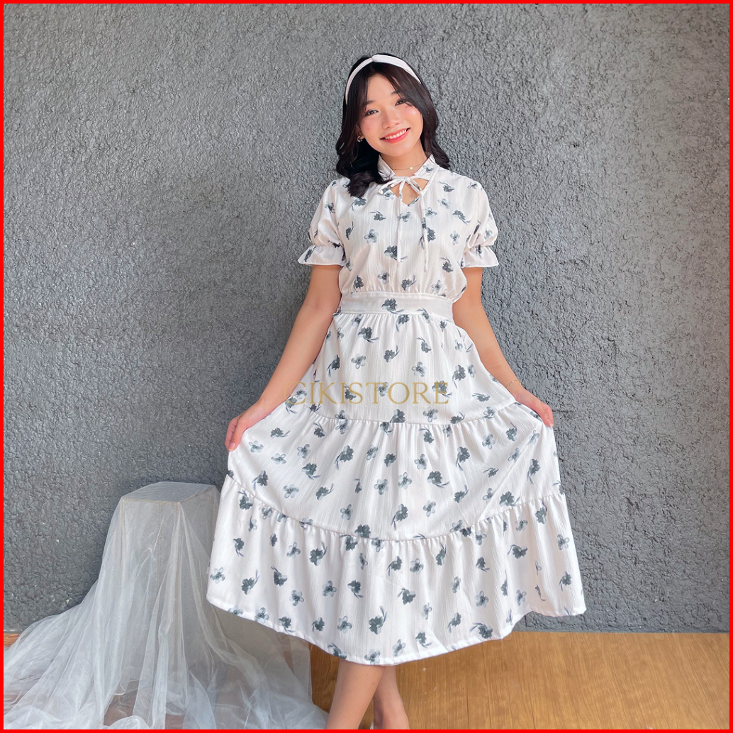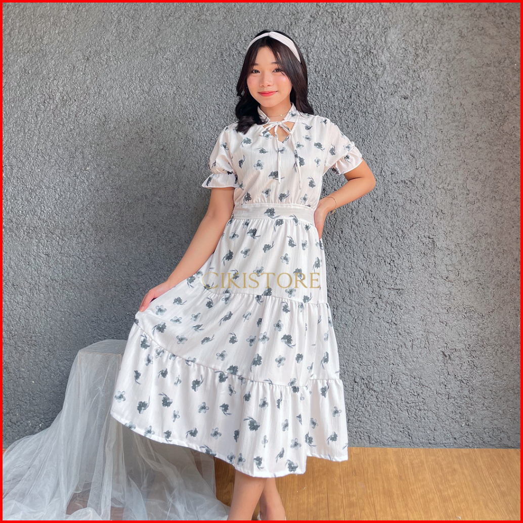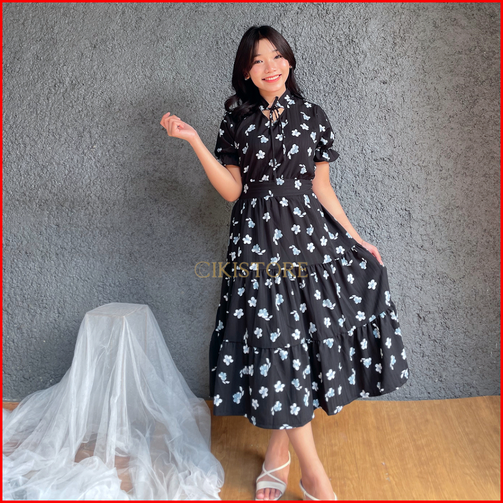 Cikistore - Eleanor Dress Wanita Korean Style Motif Bunga Dress Casual Crinkle