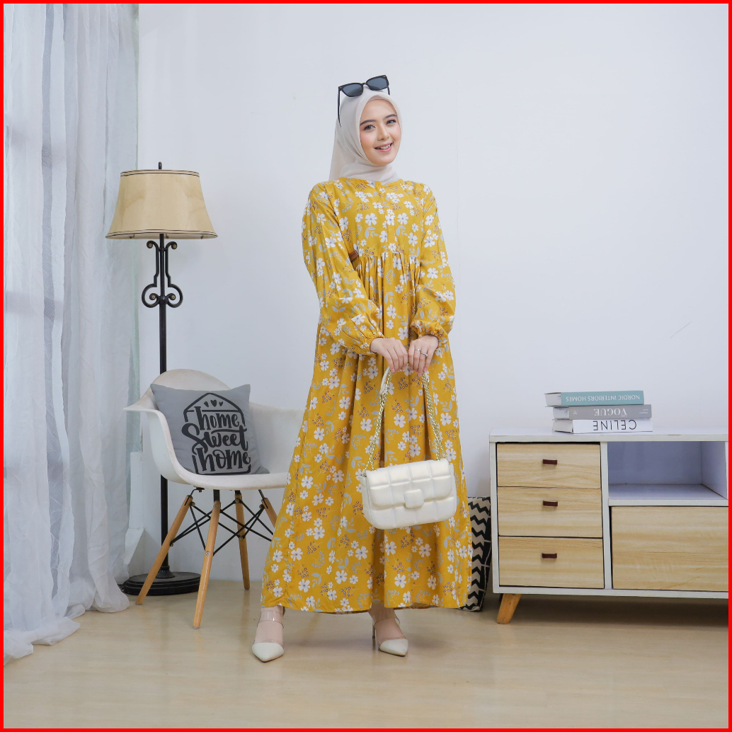 Nf Midi Dress Rayon Viscose Busui Frendly Yellow Flower Midi