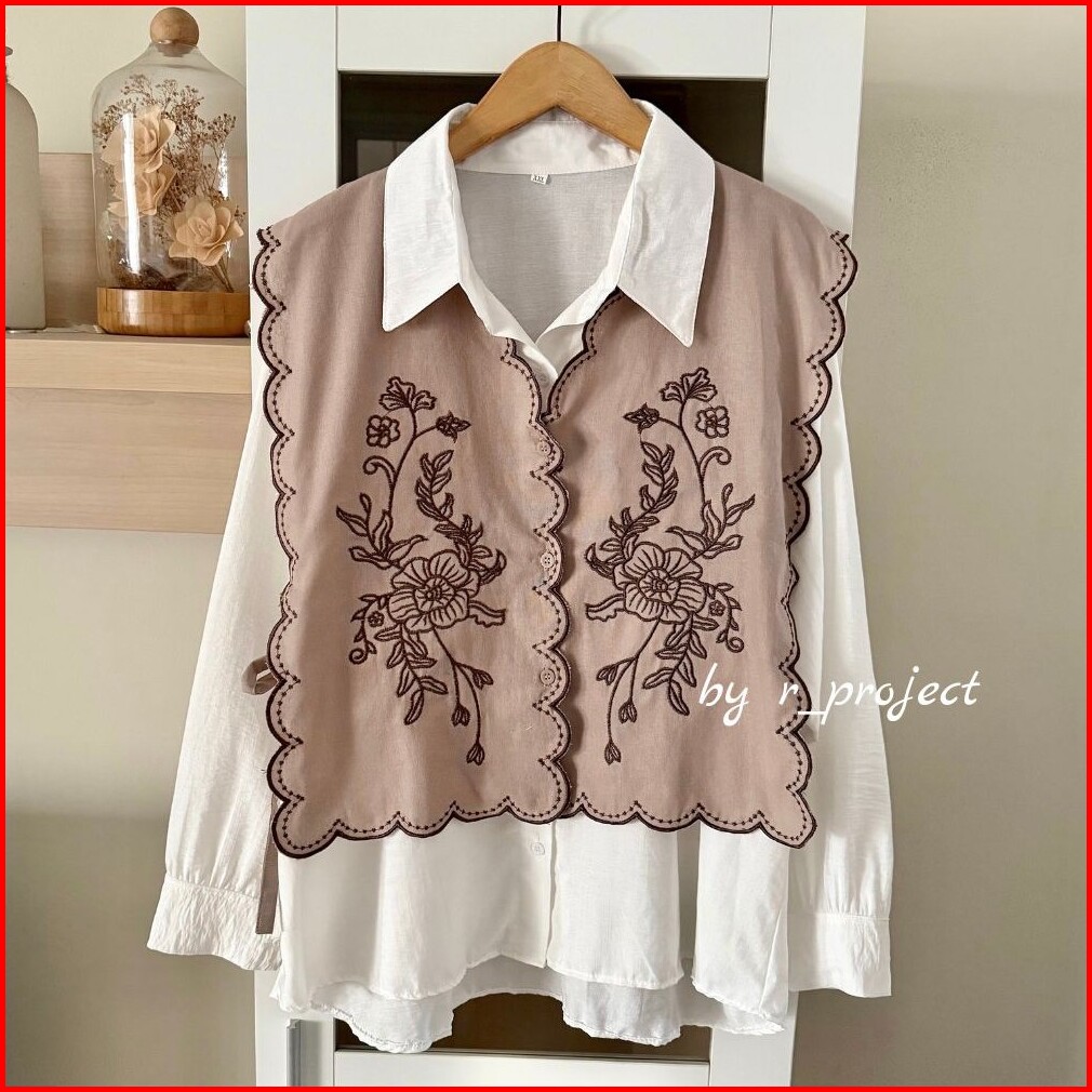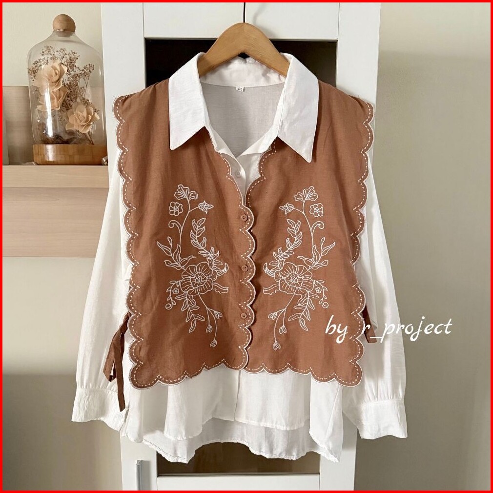 Hanna Set Inner Outer - Atasan Bordir Kemeja Bordir - Bahan Linen - R Project