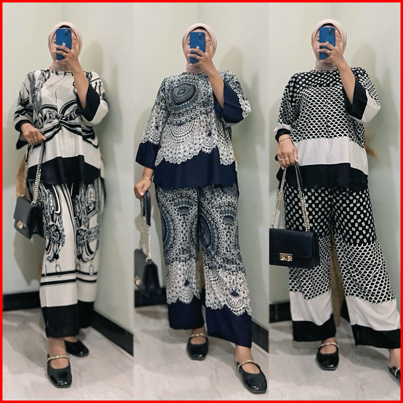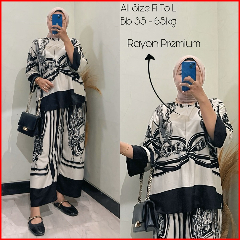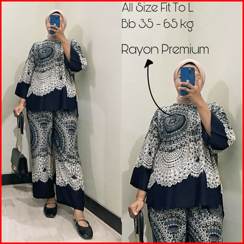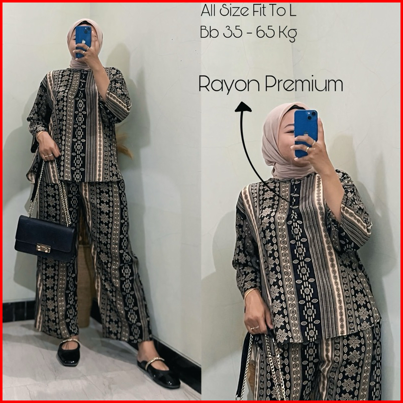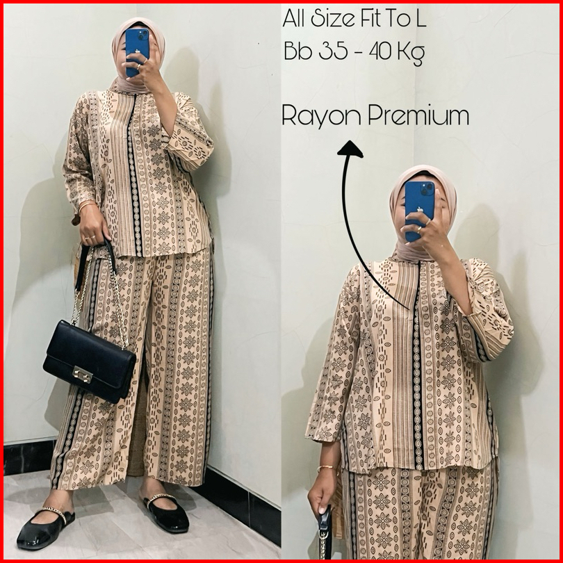 Maygrosir.id One Set Setelan Kemeja Rayon Motif Dan Kulot Panjang Bahan Nyaman Adem Lembut Premium