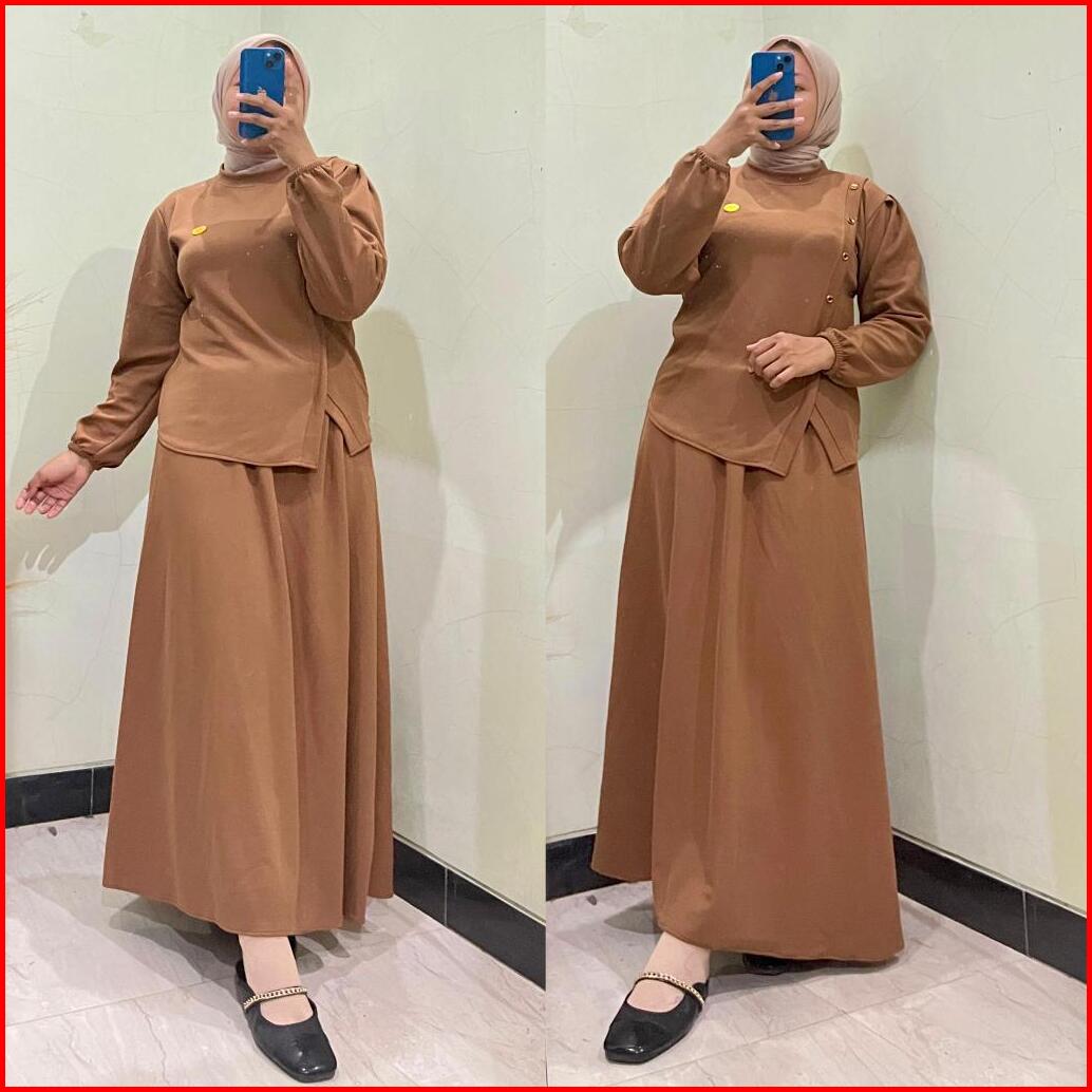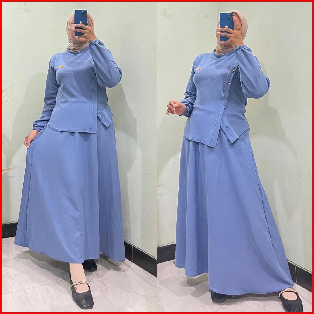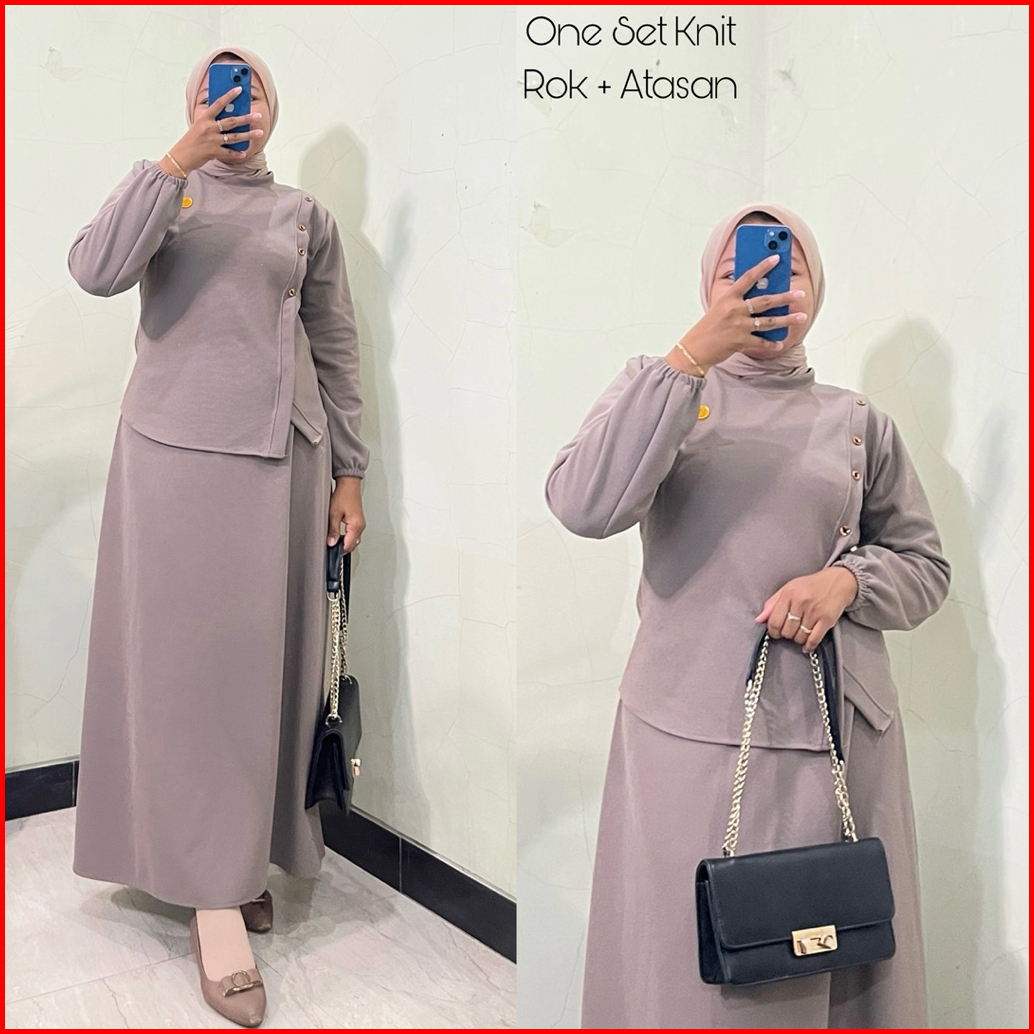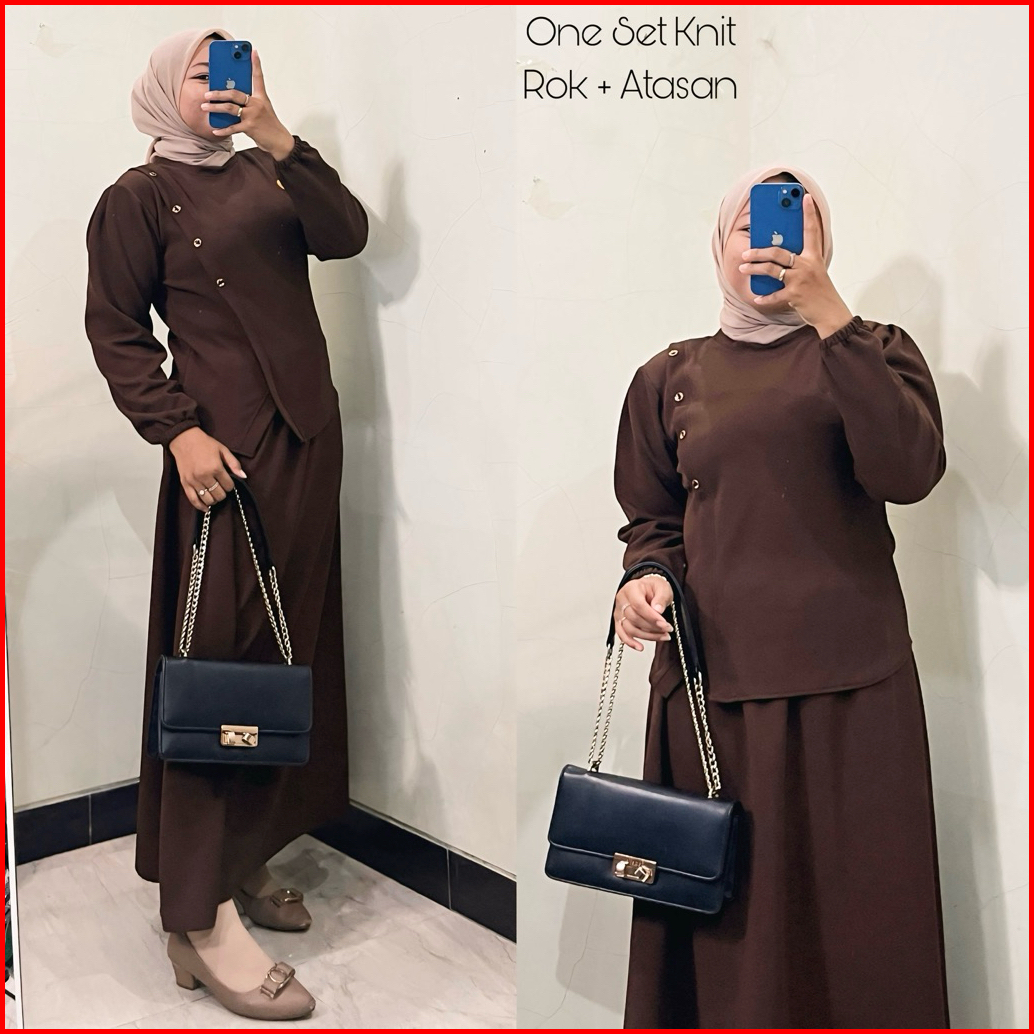 Maygrosir.id - Setelan Rok Knit Wanita Sheila One Set Rok Baju Terbaru Lengan Balon Panjang
