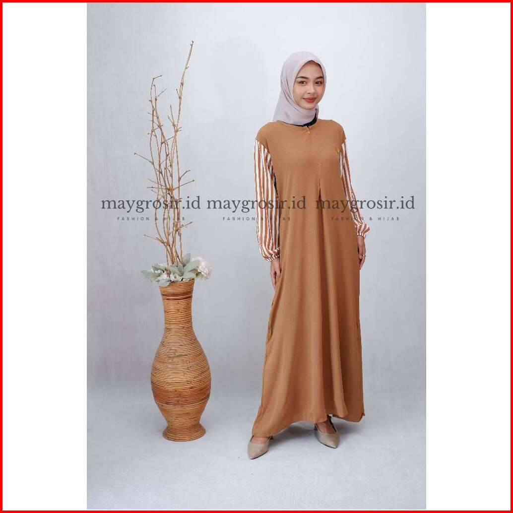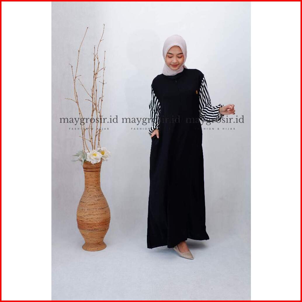 Maygrosir.id Kayla Baju Gamis Wanita Crinkle Airflow Premium Dress Muslim Lengan Panjang Salur