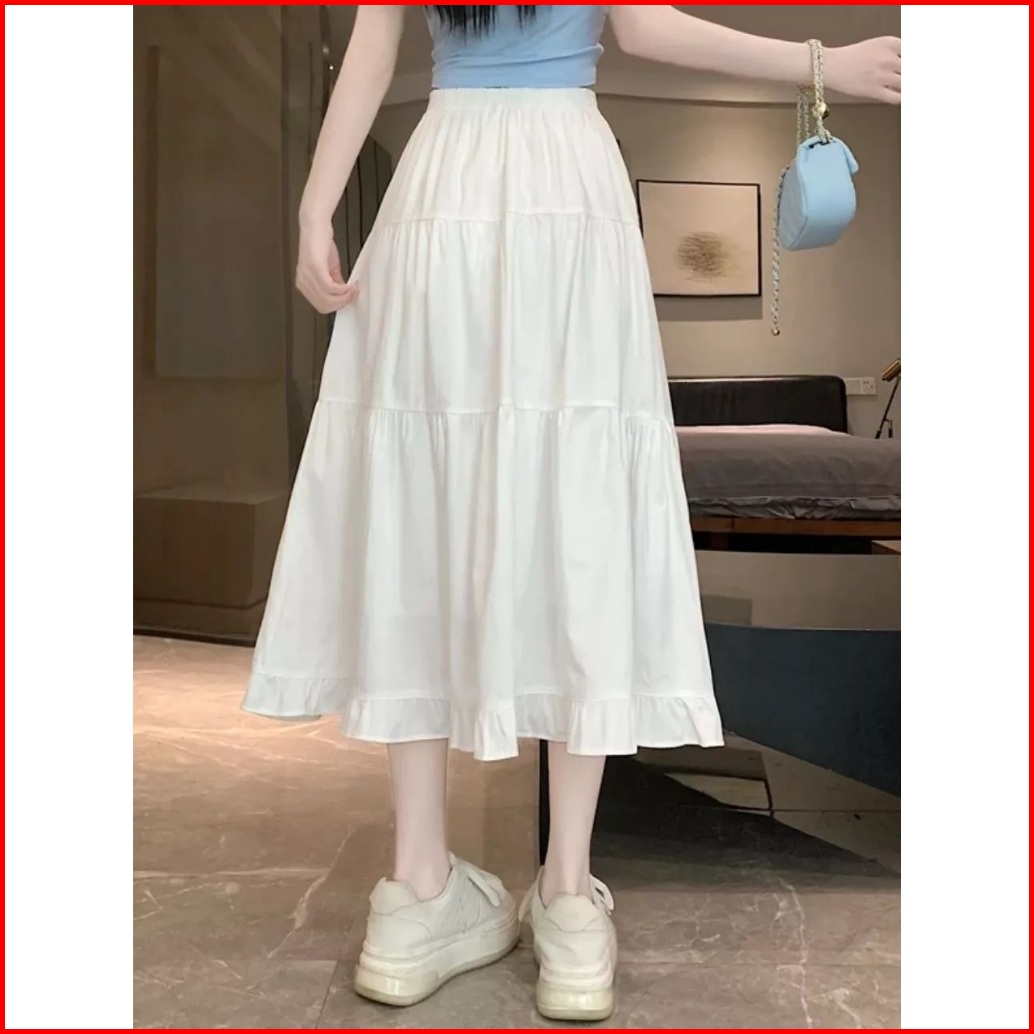 Rok Rufla Midi Skirt Ceruti Ceruty Full Furing Jumbo Besar Panjang Premium Eksklusif Perempuan Wanita Muslimah Termurah