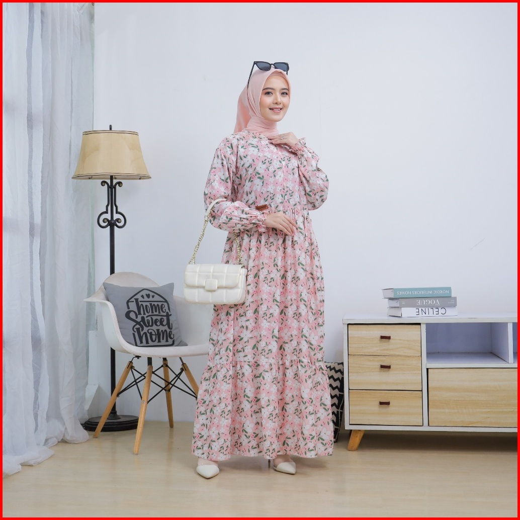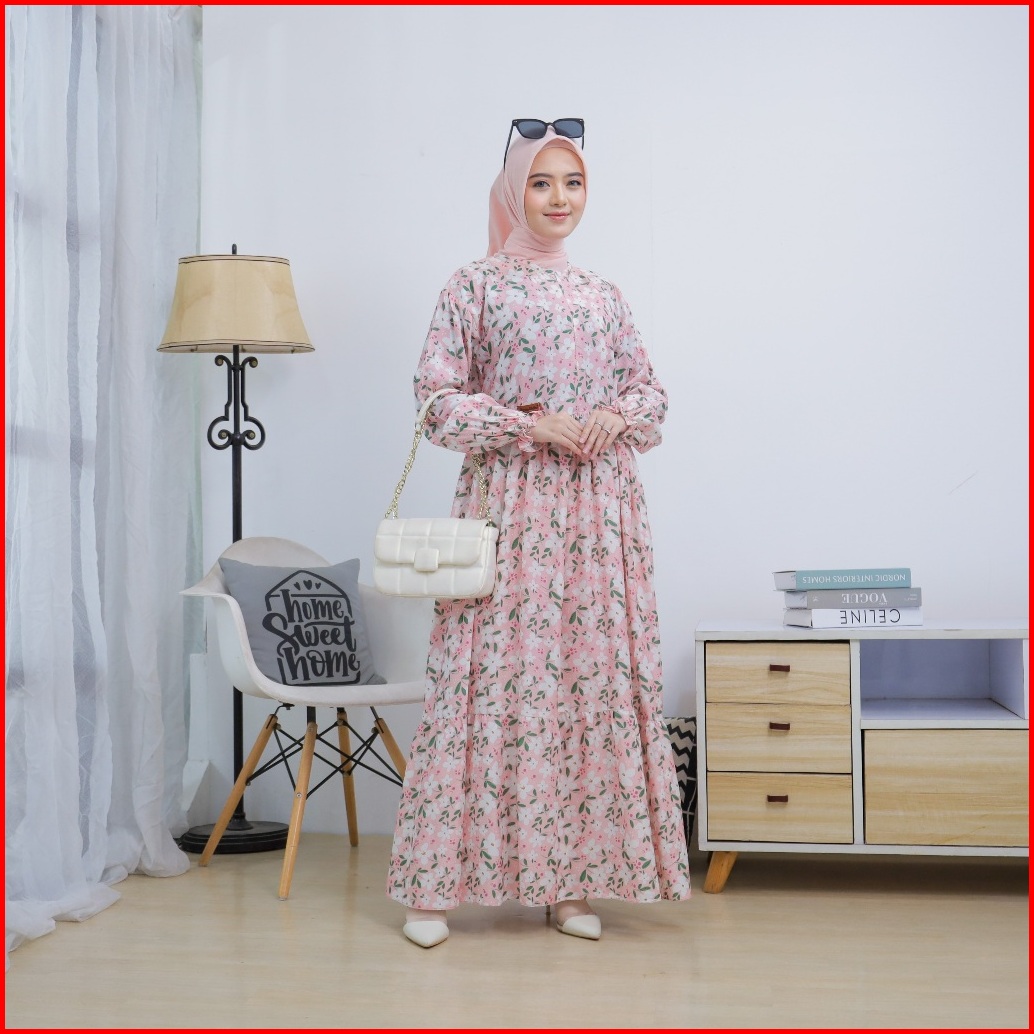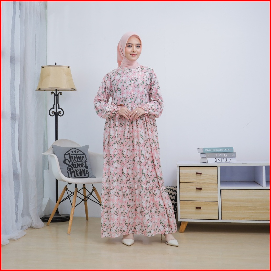Nf Midi Dress Ocha Midi Dress Busui Rayon Viscose Bunga Cantik Ibu Motif Muslim Gaun
