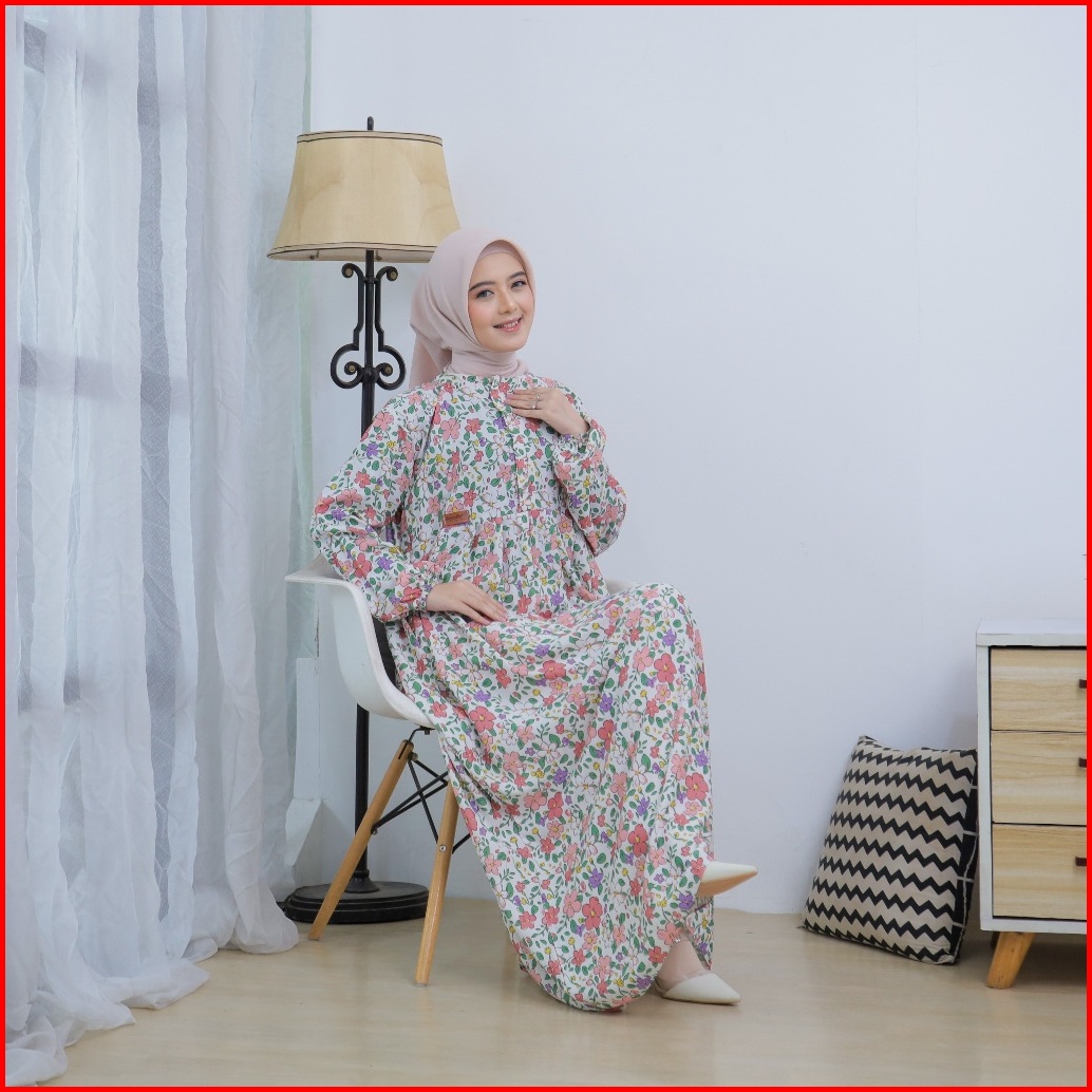Nf Midi Dress Rayon Motif Jumbo Busui Frendly Fashion Muslim