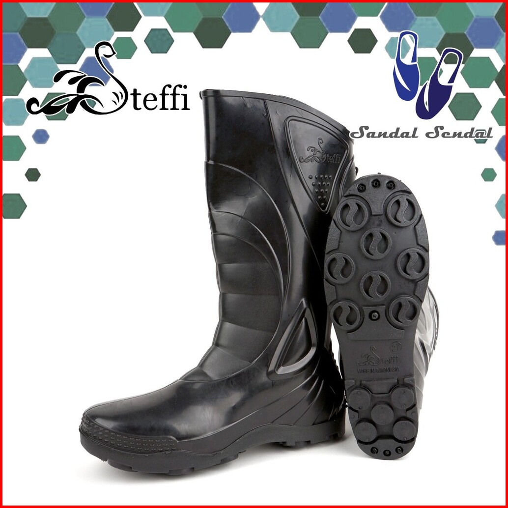 Sepatu Boot Tinggi Steffi Boots Sport Hitam Karet Lentur Anti Slip Air Proyek Perkebunan