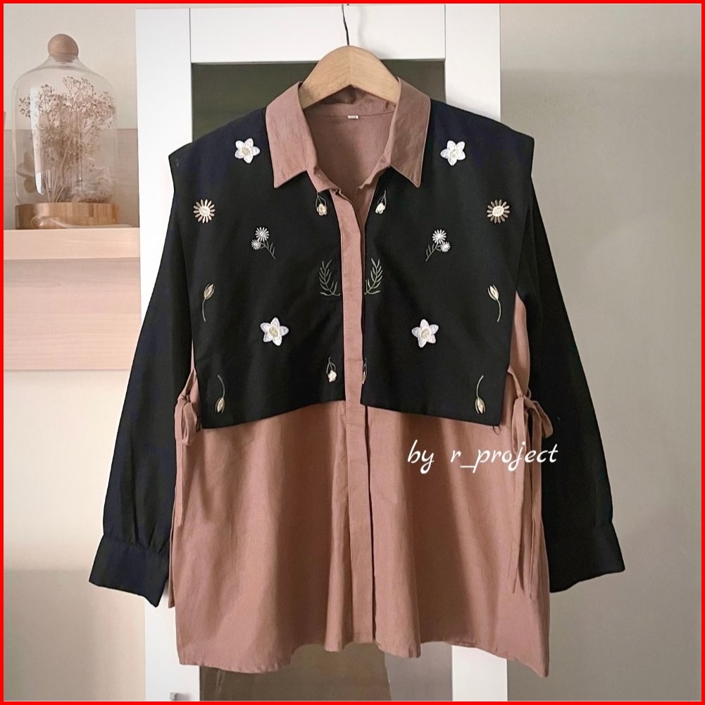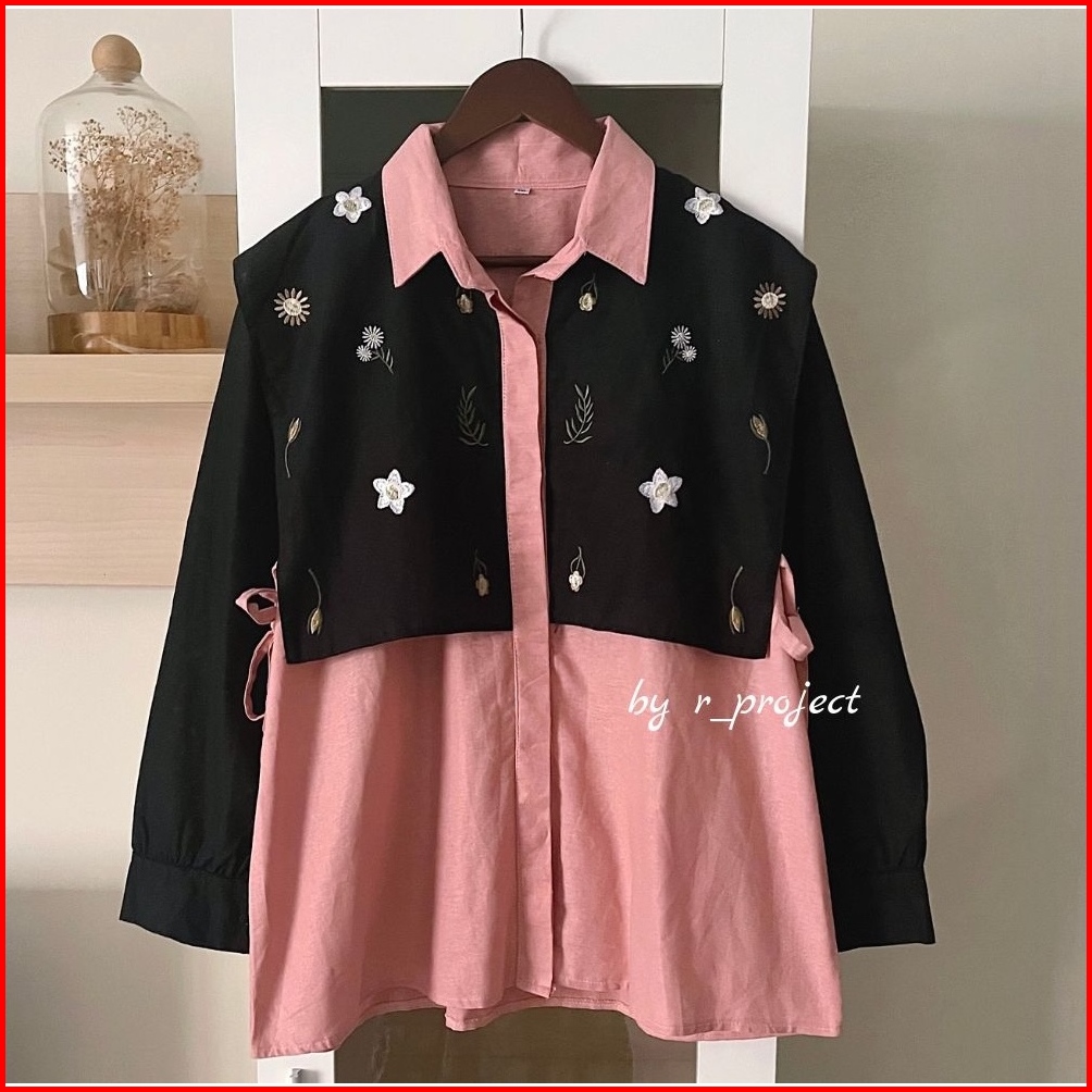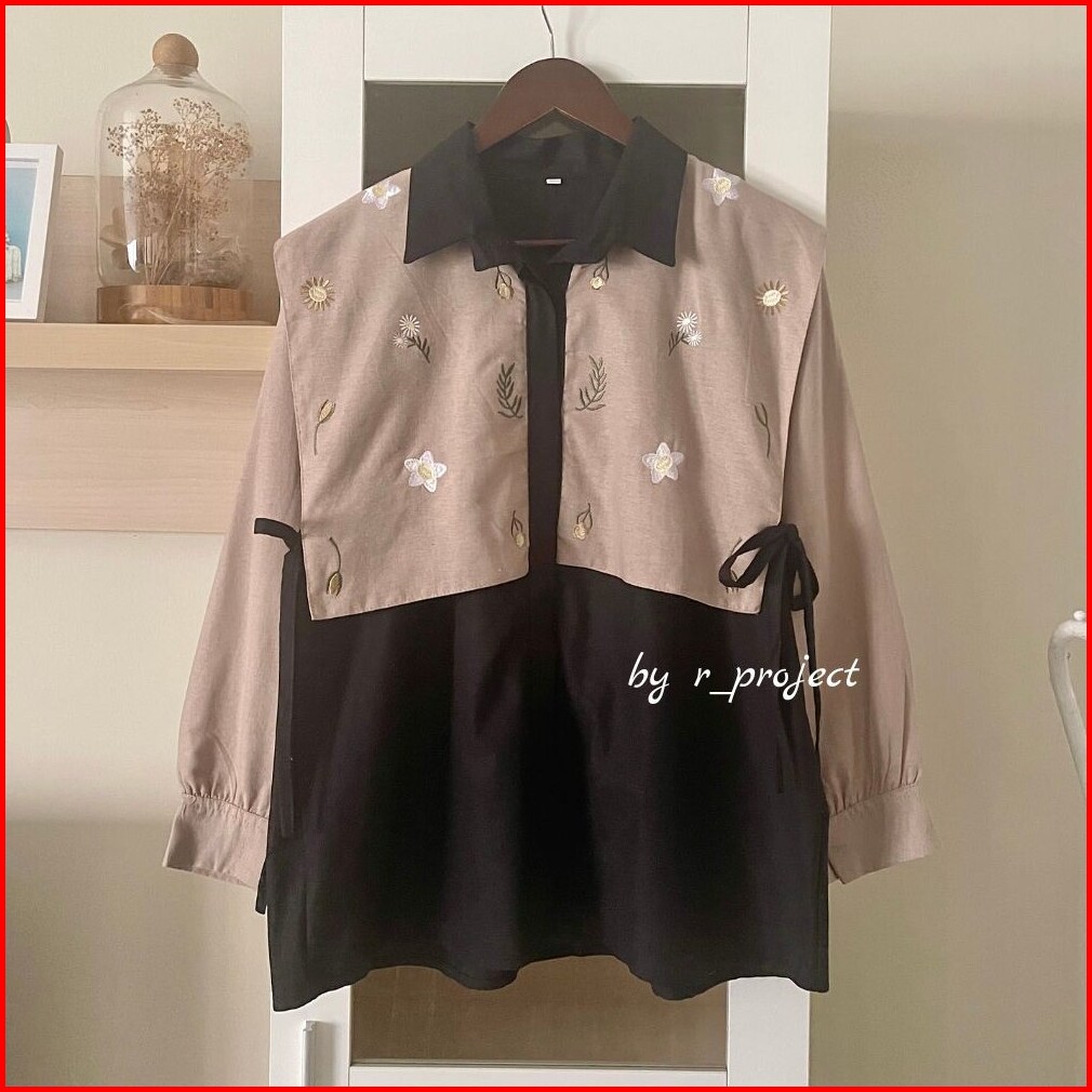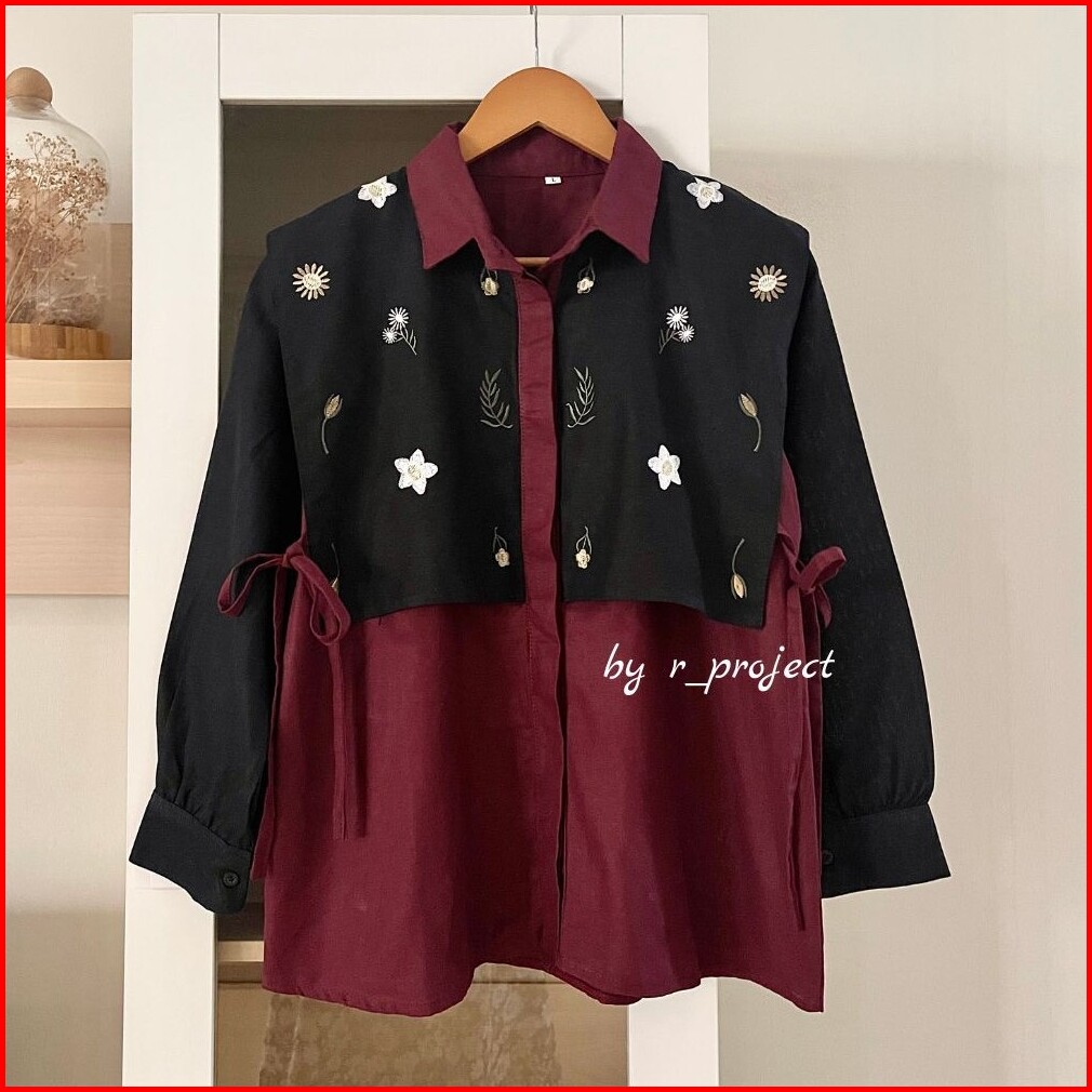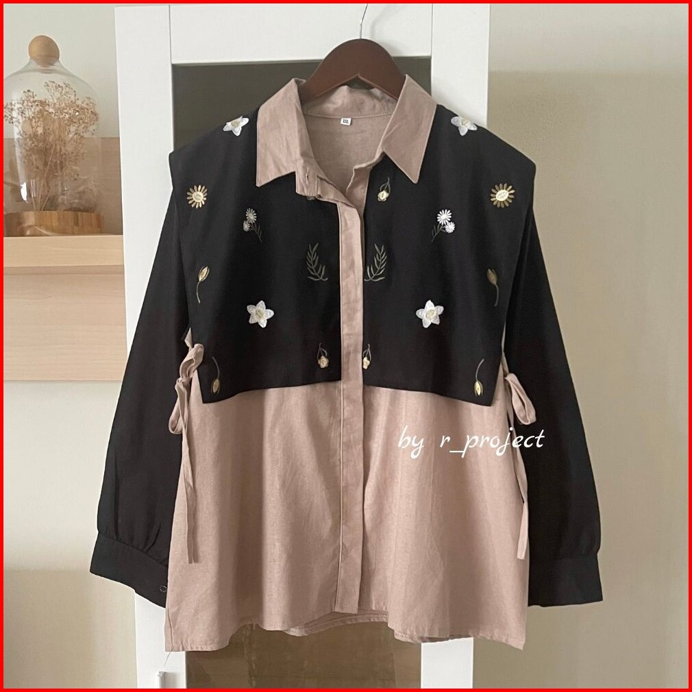 Kemeja Bordir Bahan Linen - Ukuran S M L Xl Xxl - Kemeja Jumbo - Atasan Wanita Jumbo - Daizy Shirt