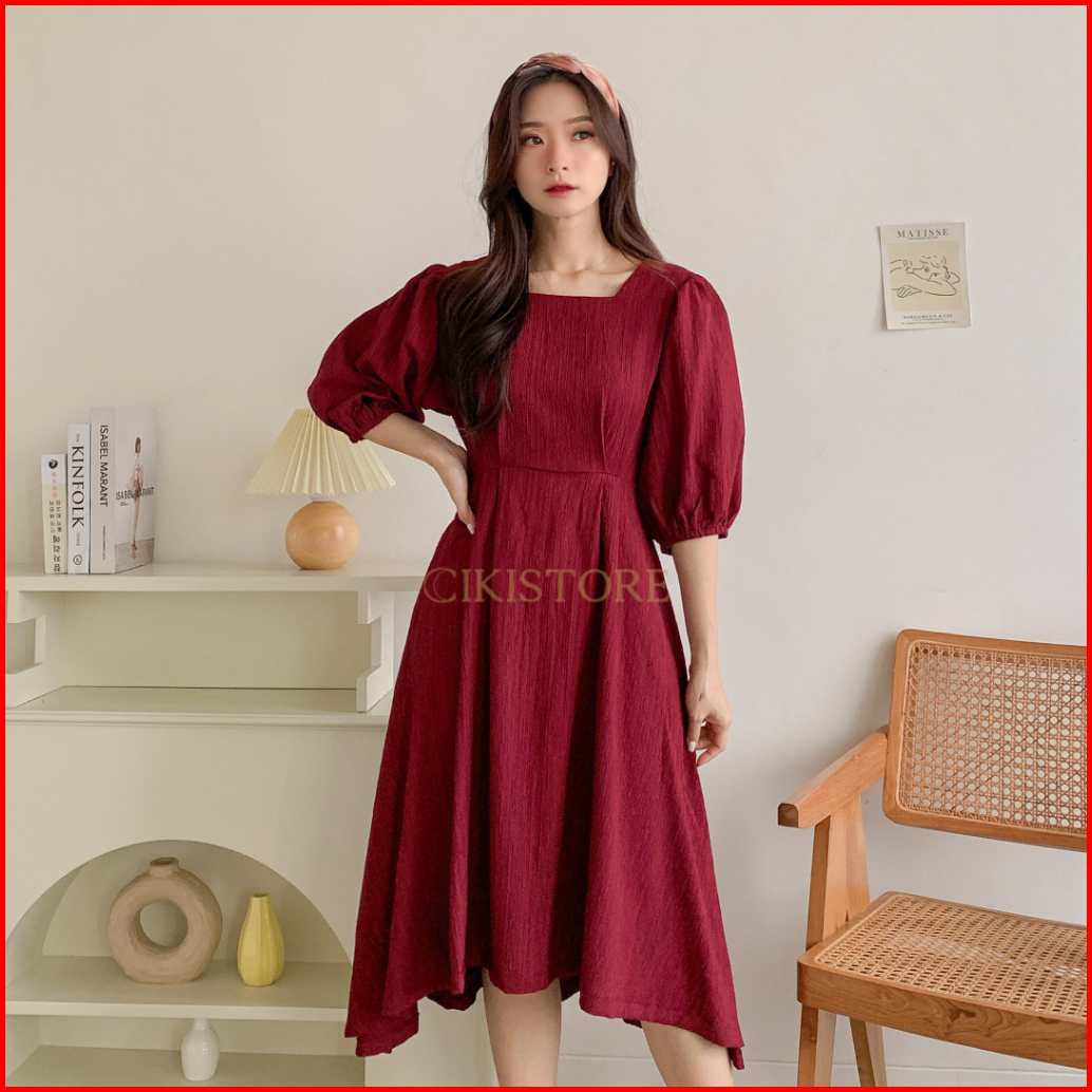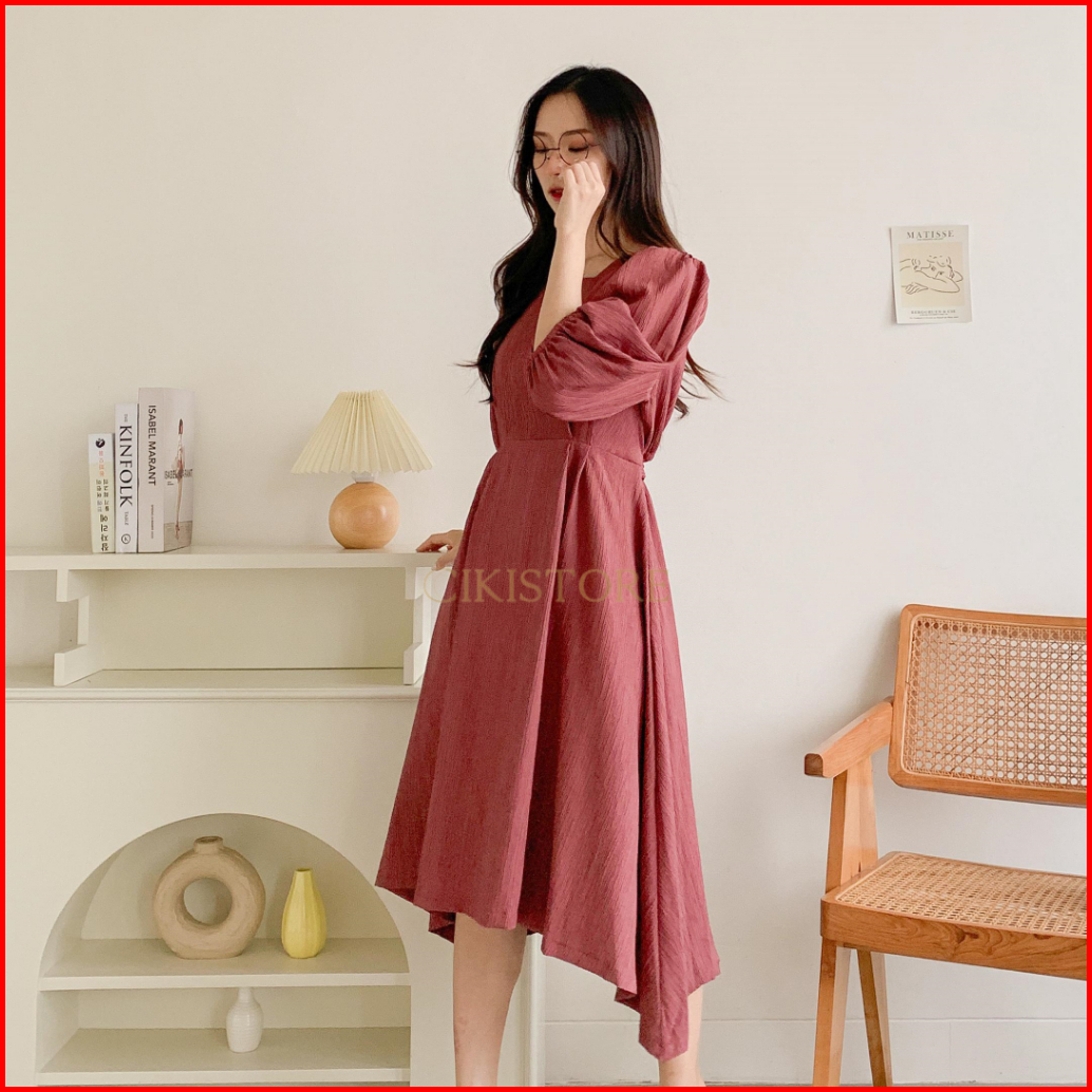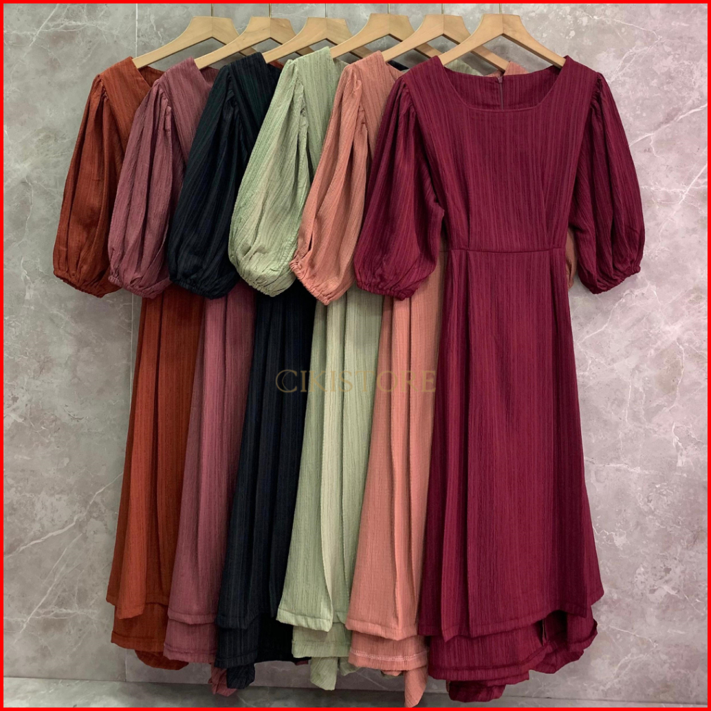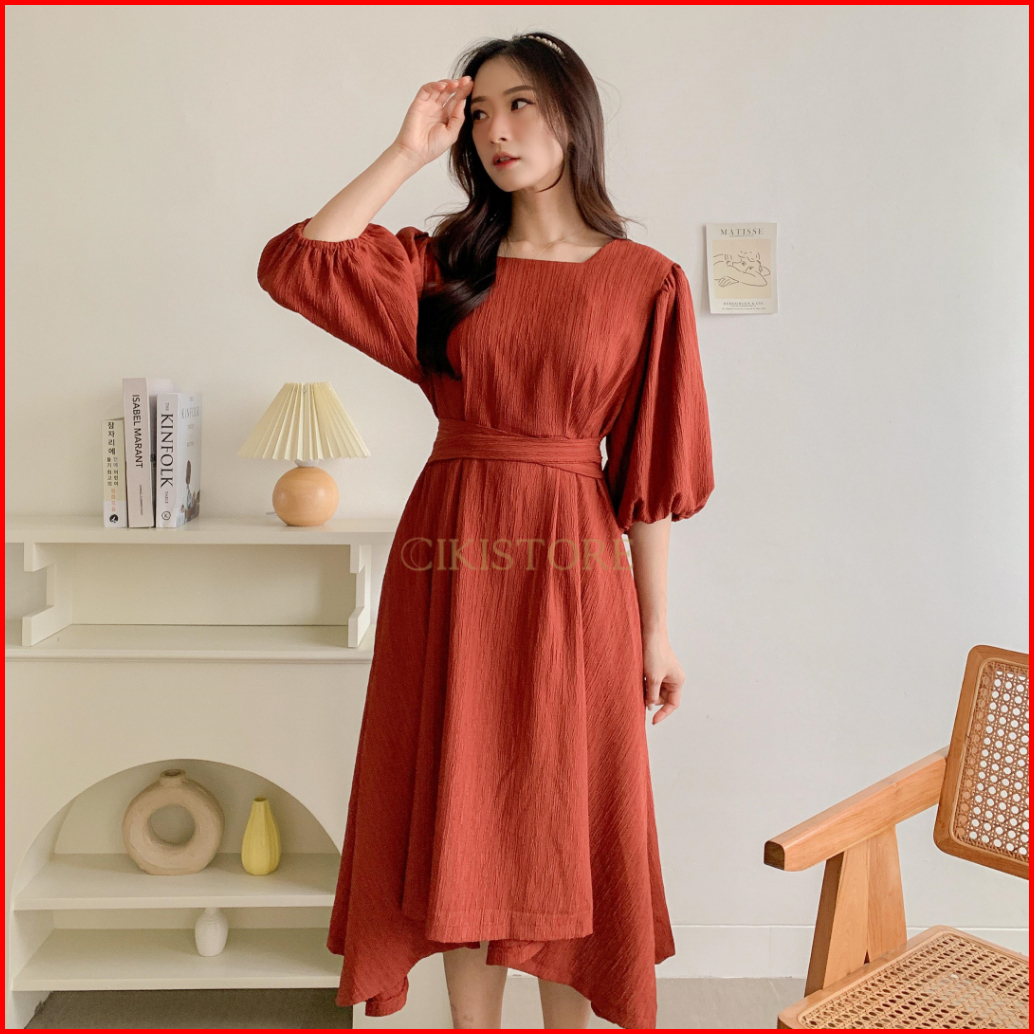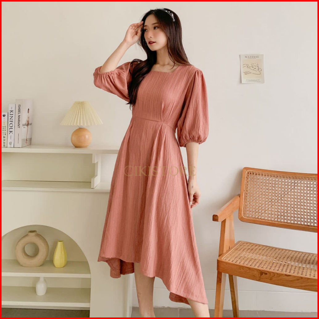 Cikistore - Alina Midi Dress Korean Style Casual Lady Crush Gaun Pesta Dailywear Dress