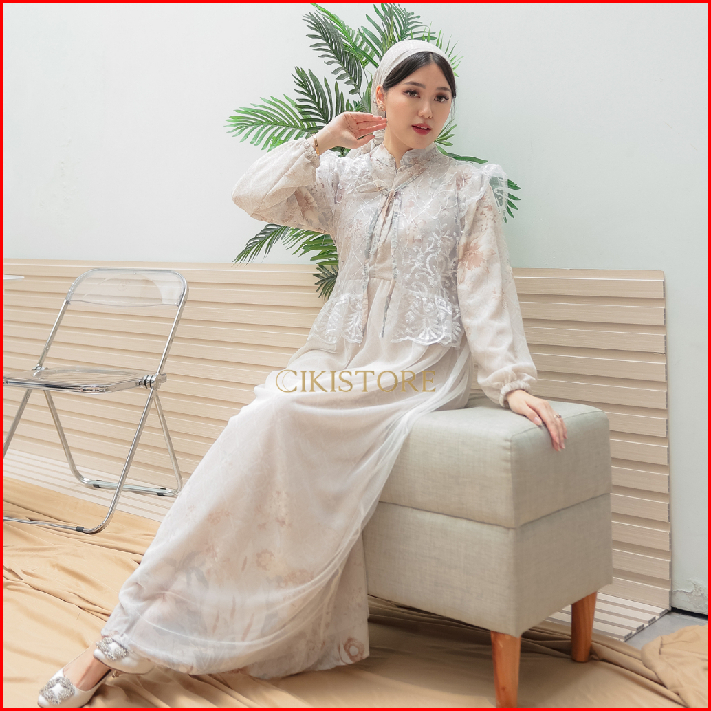 Cikistore - Aurora Gamis Dress Wanita Ceruty With Furing Gamis Pesta Mewah Elegan Long Dress Gamis
