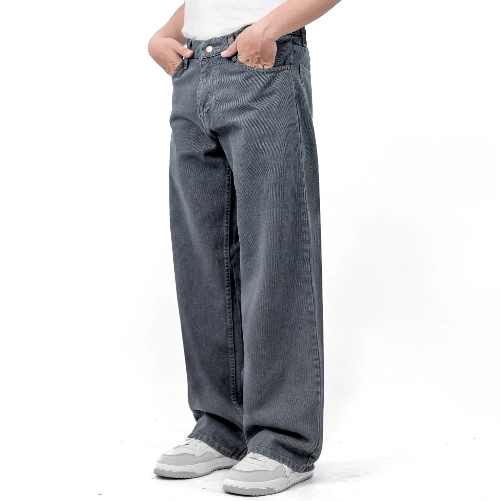 Celana Jeans Pria Wide Leg Wisker Lebar Gombrong Skena Black loose fit Reguler Standart jumbo Big Bahan Denim