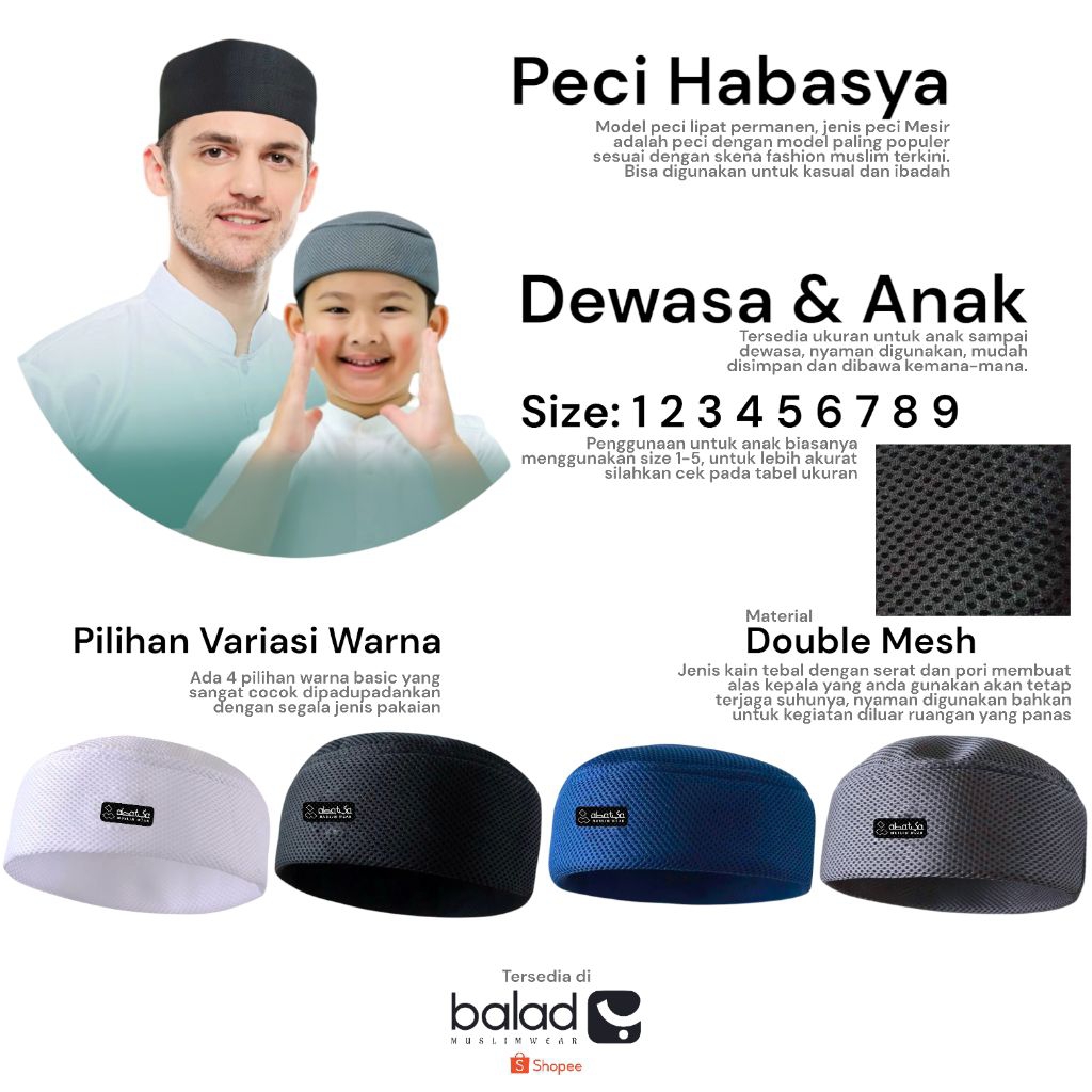 Peci Habasya Lipat Mesir Anak Dan Dewasa Kopiah Sholat