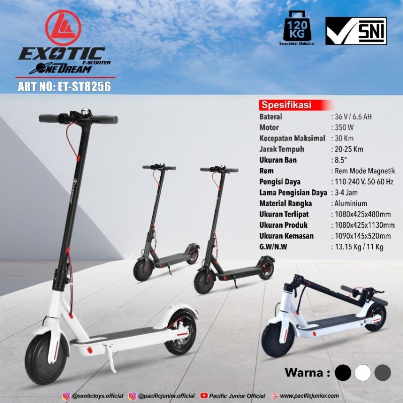 Skuter elektrik / Sekuter listrik 6.6Ah 25km Pacific Bike escooter lipat 8.5 inc Hemat BBM St8255 8145 8150