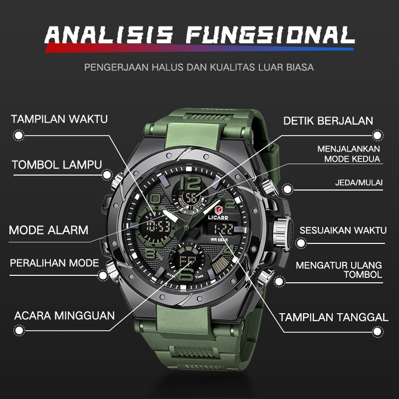 [Mall] Licarr Jam Tangan Pria Merek Fashion Analog Digital Santai Kuarsa Anti Air Olahraga Multifungsi Jam Tangan Cowok Origina