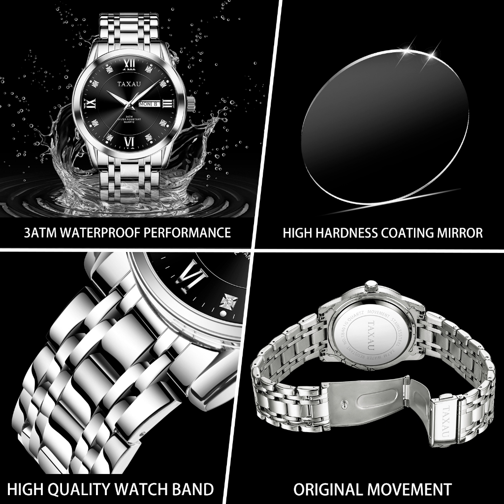 [Mall] Taxau Jam Tangan Pria Original 100 PERSEN Terbaru Analog Stainless Steel Rantai Anti Air Keren Watch Men 8401