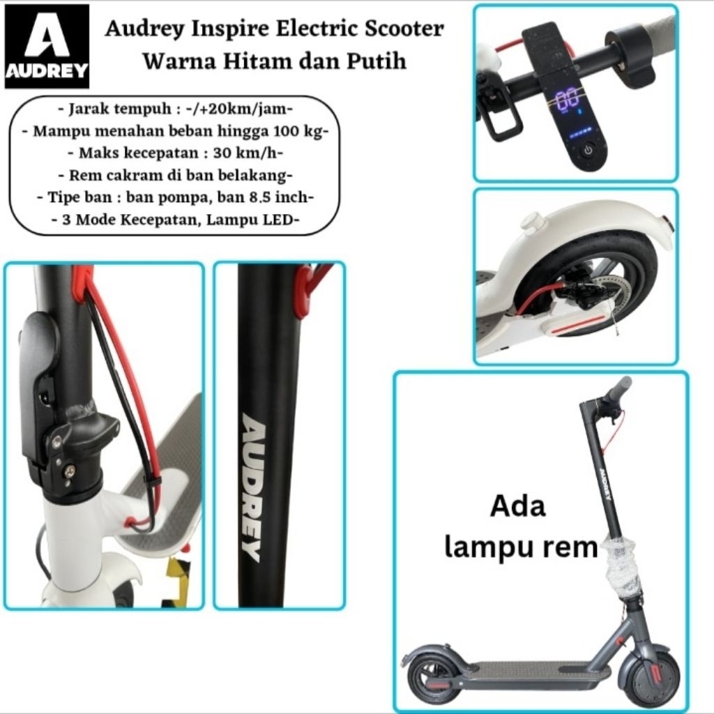 Audrey Inspire Electric Scooter Garansi 1 Tahun 7.8Ah / Scooter Listrik / Elektrik Skuter