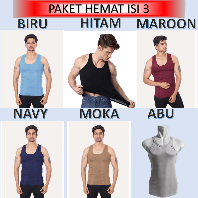 SINGLET PRIA PAKET HEMAT ISI 3 Kaos dalaman Pria Lelaki Tanpa Lengan Baju Pria