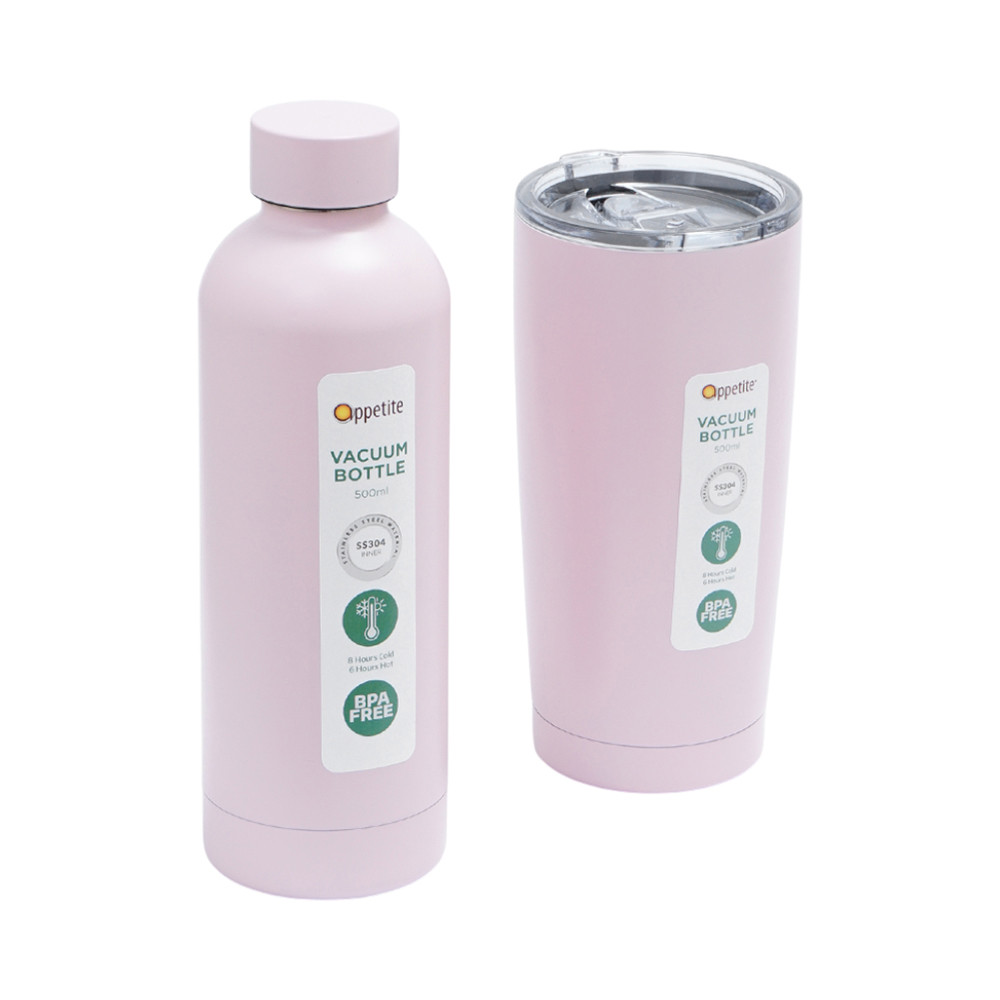 Informa Appetite Set Botol Minum Vacuum Flask Sachi Stainless Steel 500 ml Set 2 Pcs - Pink Tumbler Botol Air Tempat Min