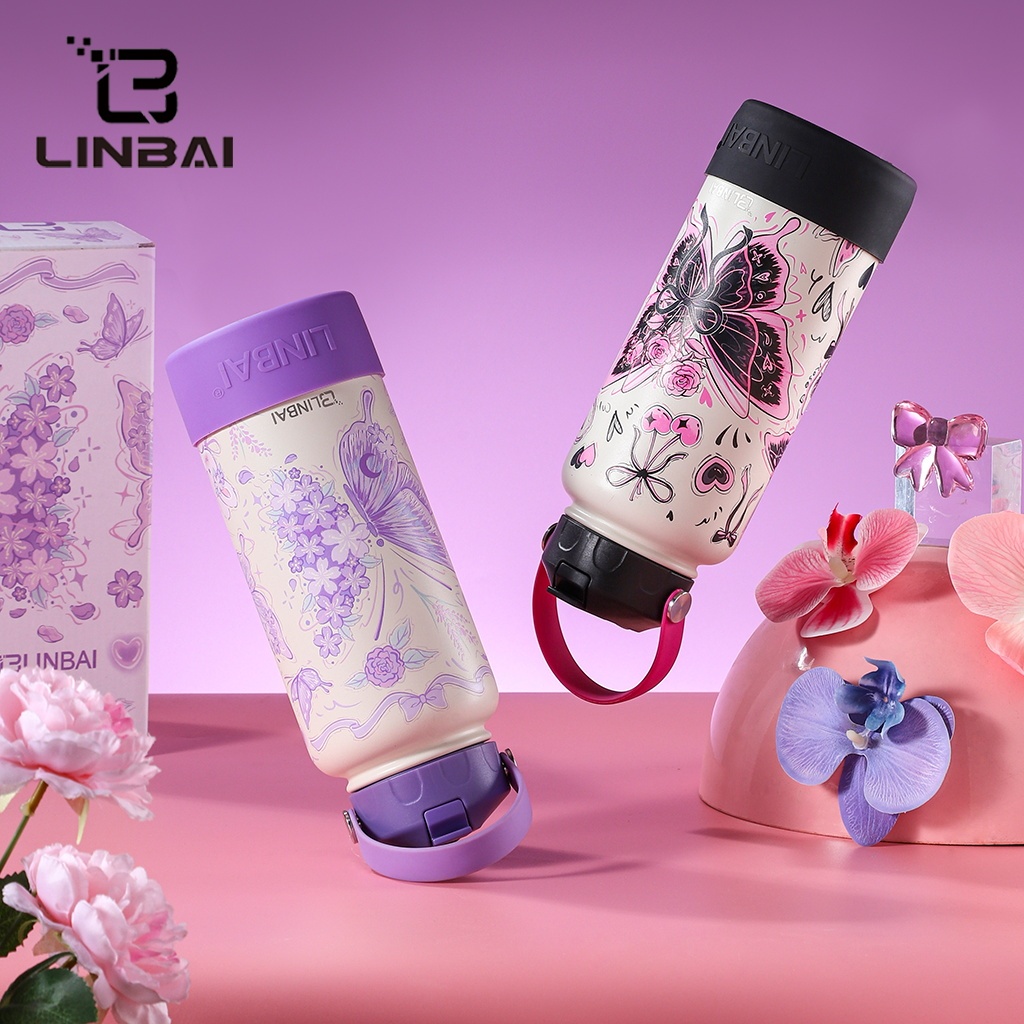 LINBAI Flask 32oz Printing Stainless Steel Water Bottle with Straw and Boot Tumbler Hot and Cold Vacuum Insulated Cup