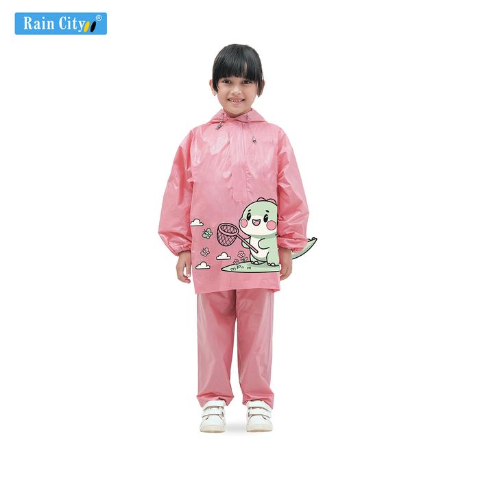 RAIN CITY Jas Hujan Setelan Anak Lucu Motif Dino Rexy 70070 (5-12 TAHUN BACA DESKRIPSI) - REXY Pink