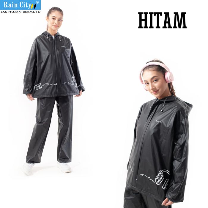 Jas Hujan Setelan Headphone 70035 - Rain City PVC - Headphone Hitam