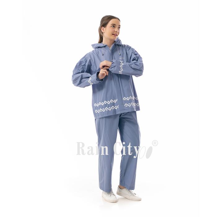 Rainciy Jas Hujan Stelan Wanita Lucu Pink Lotus - 69129 Pvc Tahan Air Anti Rembes - Abu