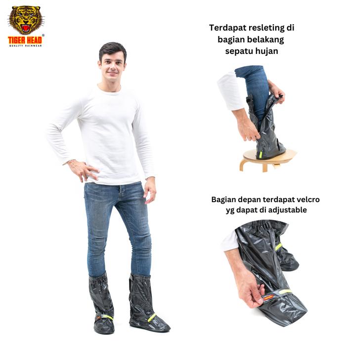 Tiger Head Sepatu Hujan Metro 67009 Anti Slip + Reflektor Cover Motor - Hitam, S (38-39)