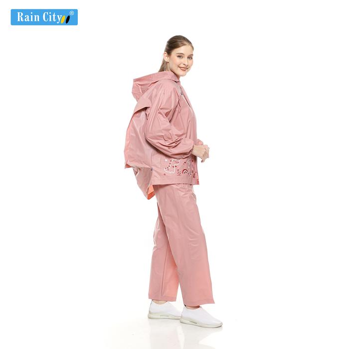 Raincity Jas Hujan Stelan Wanita Lucu Aesthetic Backpack Ransel Dino - Dino Doodle Pink