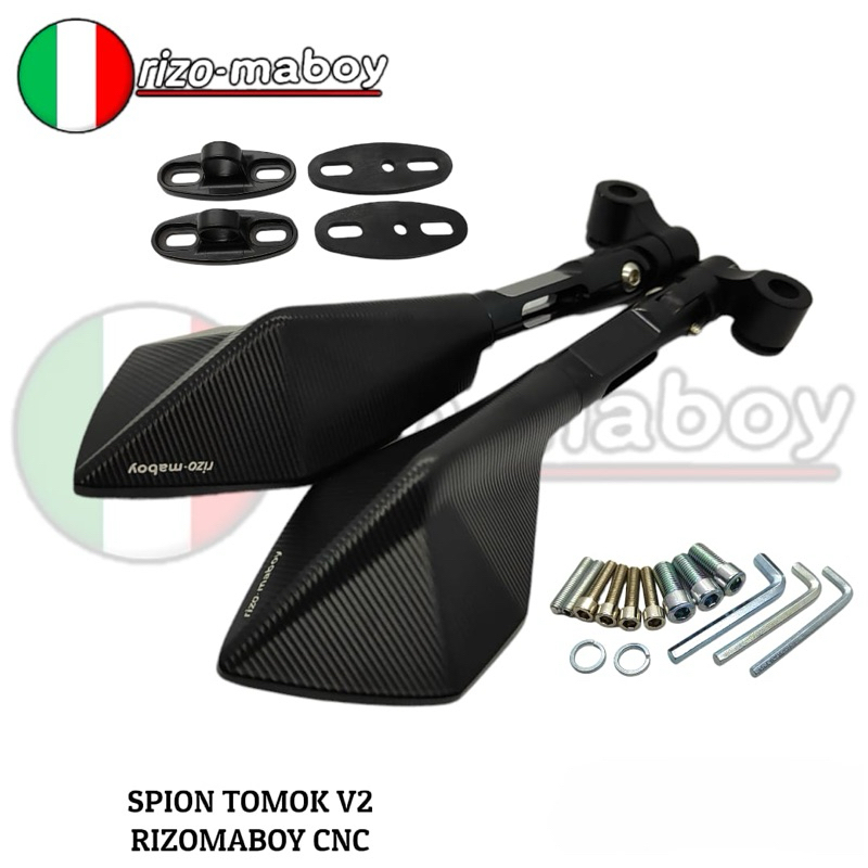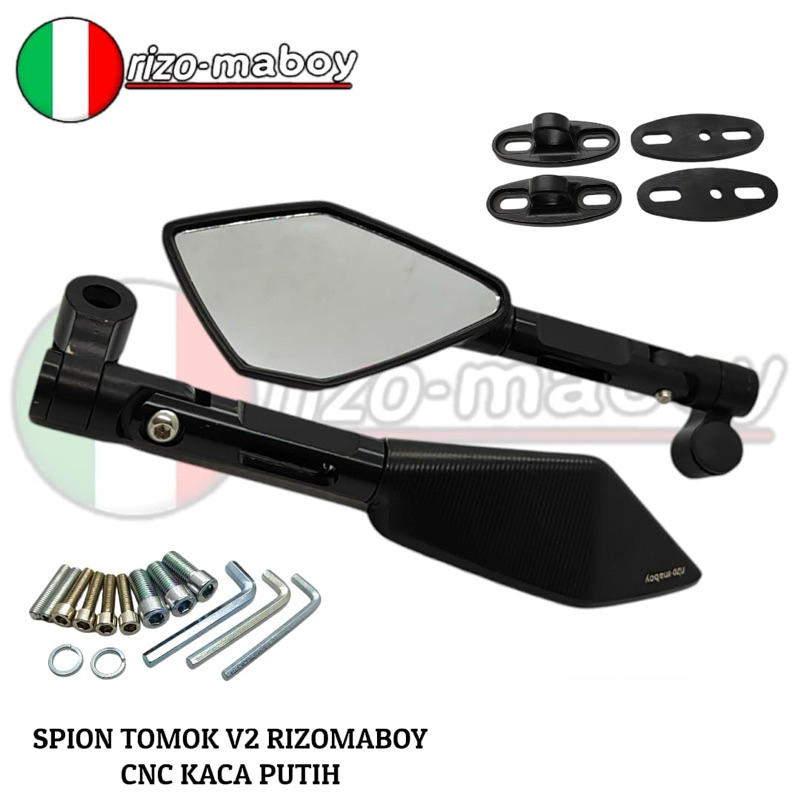 Spade Shop Rizo-maboy Racing - Spion V2 Rizo-maboy Full CNC Black Series Kaca Biru Dan Kaca Putih Universal Semua Jenis Motor
