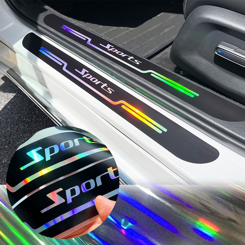 Morgan Store METALIVE 4Pcs Sticker Pelindung Sill Plate Mobil Laser Stiker Car Door Step Pijakan Pintu Mobil