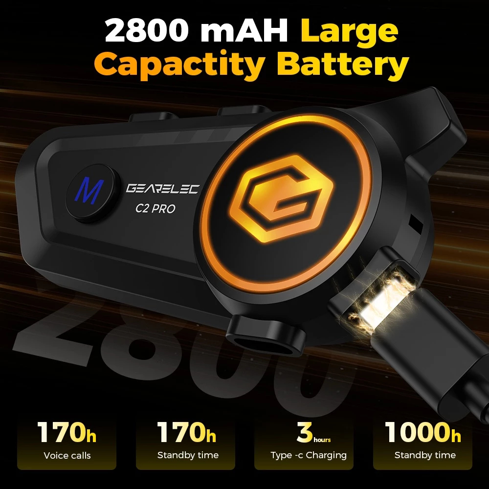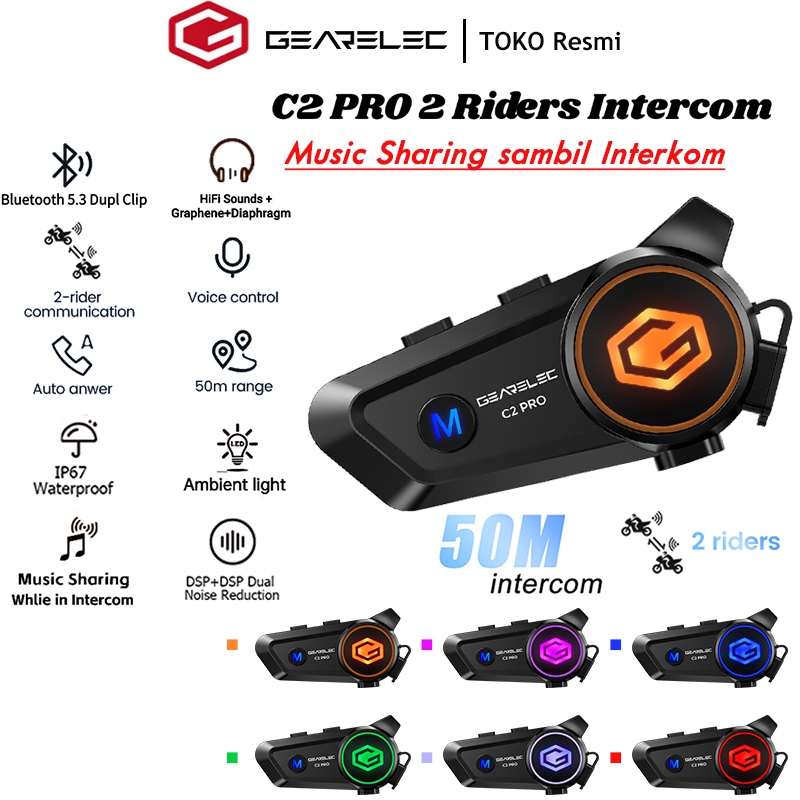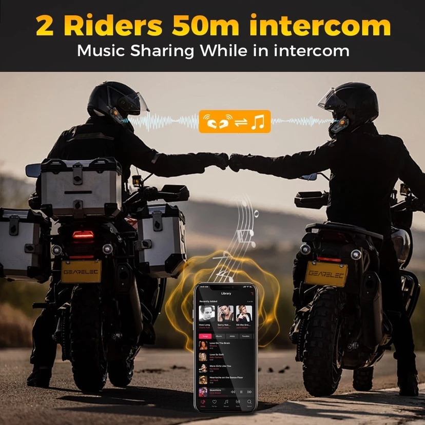 Spade Shop GEARELEC C2 Pro Motorcycle Helmet Intercom Headset 2 Riders 50m Intercom Support Music Sharing While In Intercom
