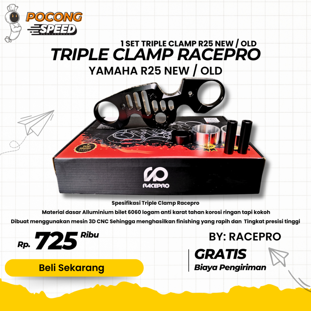 TRIPLE CLAMP CNC R25 NEW/OLD SEGITIGA ATAS CNC R25 NEW/OLD KOKPIT CNC R25 NEW/OLD BAHAN ALLUMINIUM BILLET T6 6060