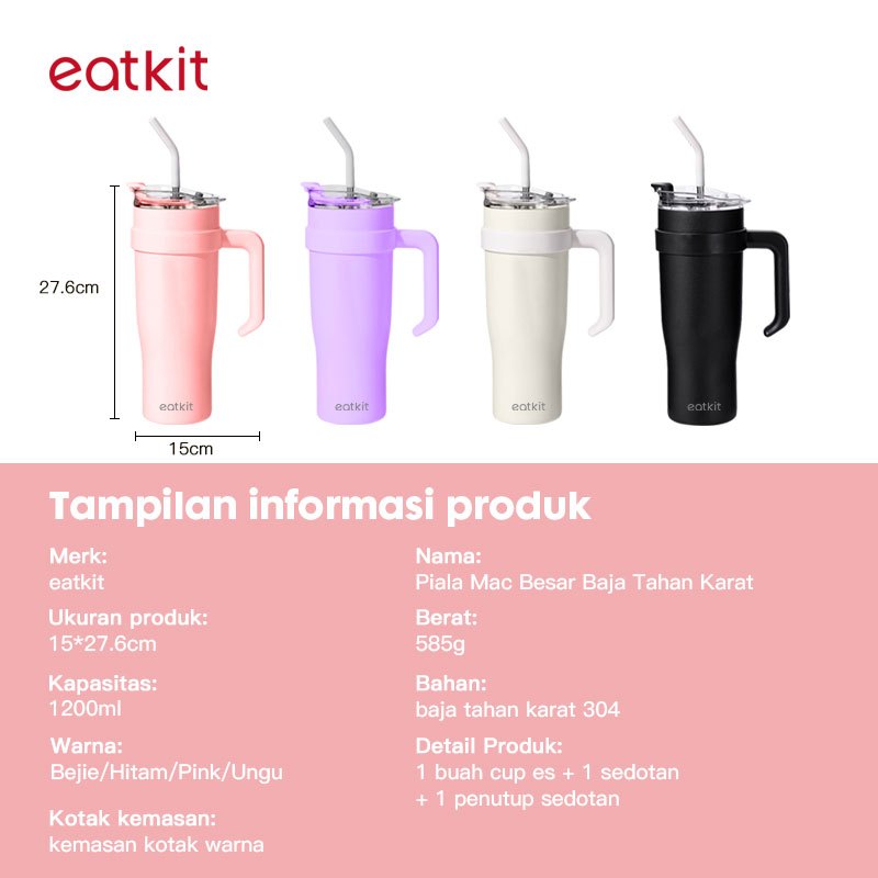 Eatkit Tumbler Stainless Steel | 304 Botol Minum Stainless 1200ml | Botol Minum Tahan Panas Dan Dingin Portable | Free