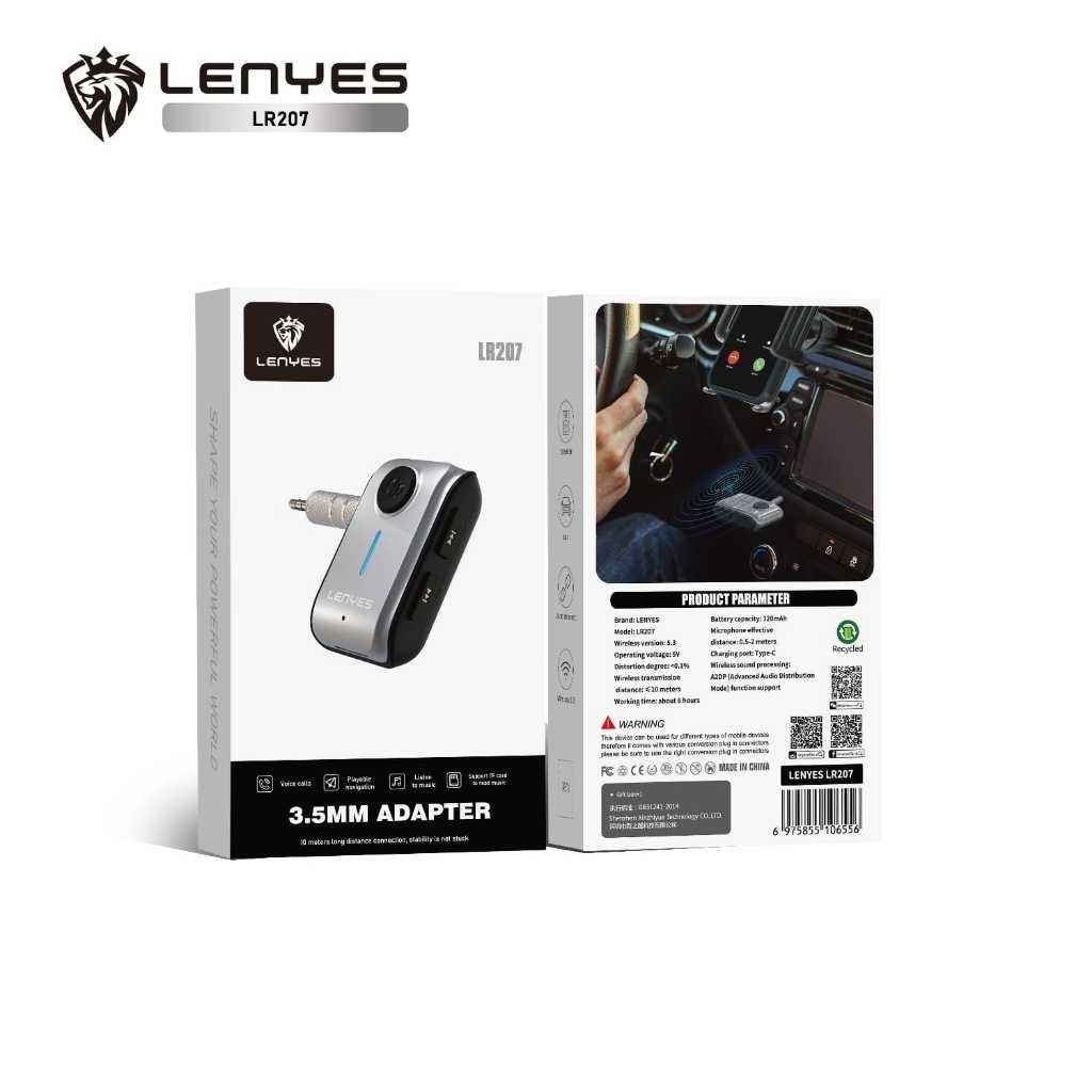 Geo Store LENYES Bluetooth Receiver 5.3 Colokan Aux 3.5mm Untuk Speaker Mobil LR207