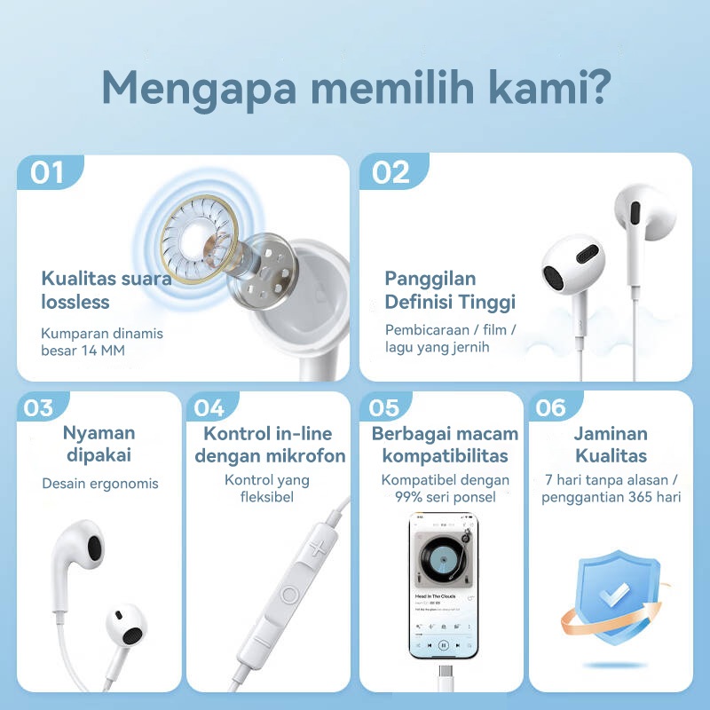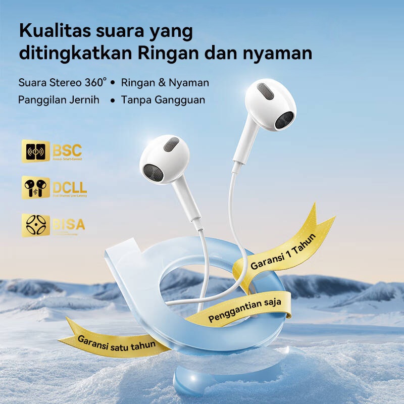 Geo Store (HOT)BASIKE Headset kabel Log On Gaming Handsfree Encok Music in Ear Lightning Type C 3.5mm Jack